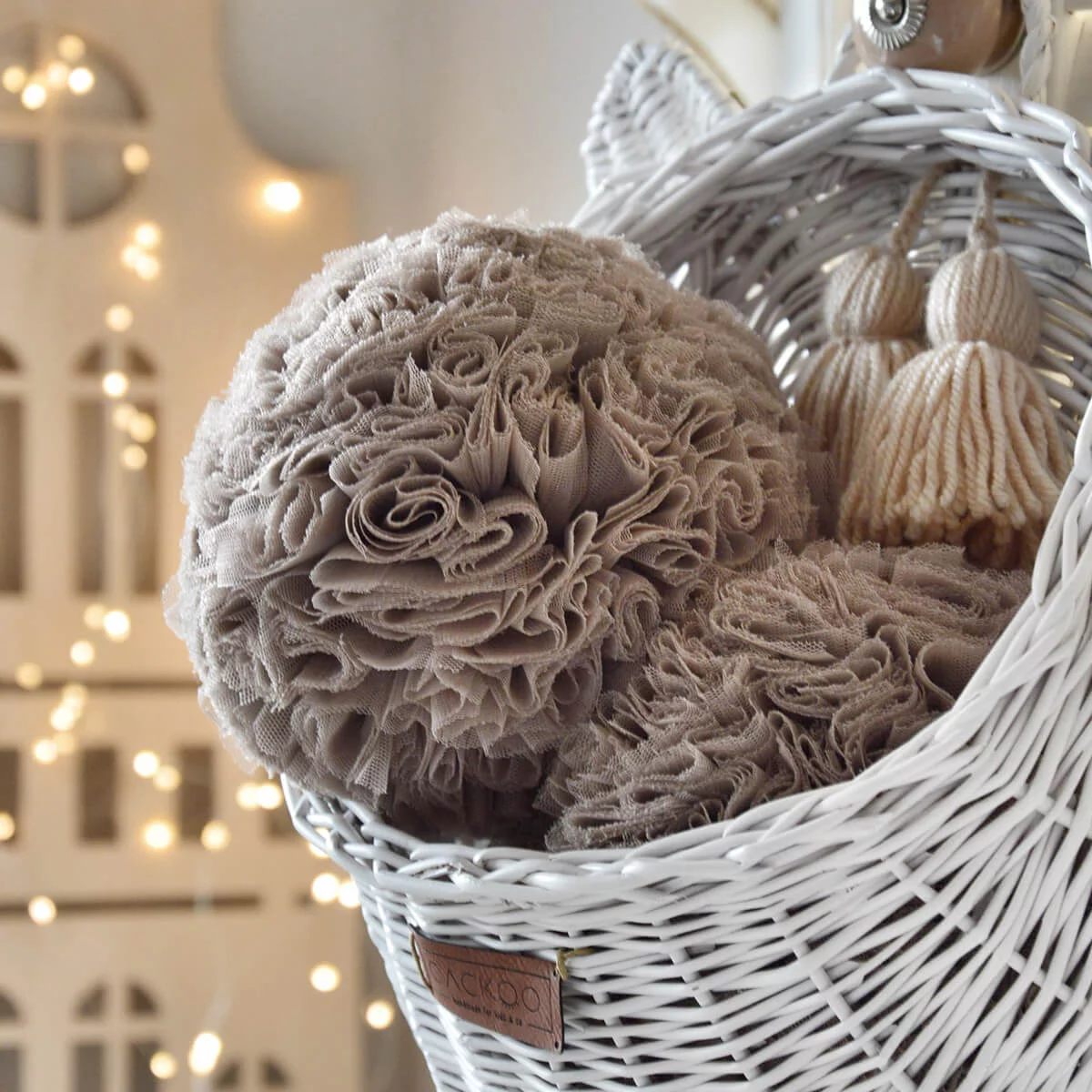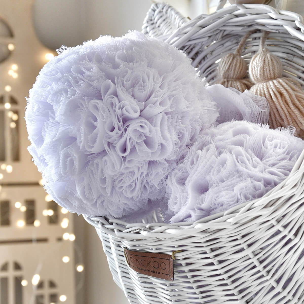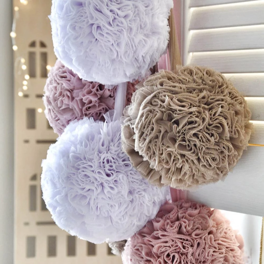 5. Χειροποίητα πομ πoν με διάμετρο περίπου 15 εκ.