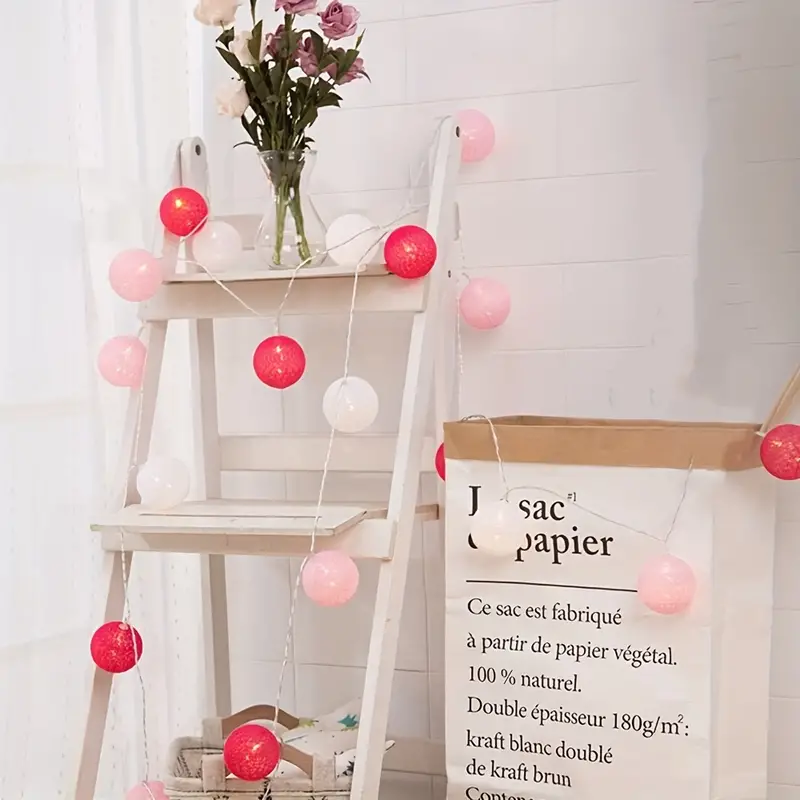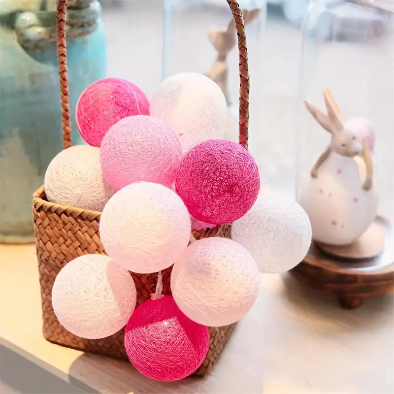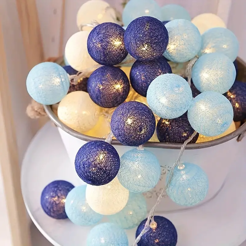 Τα διακοσμητικά φωτάκια μπαταρίας θα δημιουργήσουν την πιο cozy και χαλαρωτική ατμόσφαιρα στο παιδικό δωμάτιο. Ιδανικά για διακόσμηση, κρεβατιού, σκηνής, γραφείου, βιβλιοθήκης! Υλικό: Βαμβάκι Διάμετρος μπάλας: 4 εκατοστά Μήκος: 3 μέτρα
