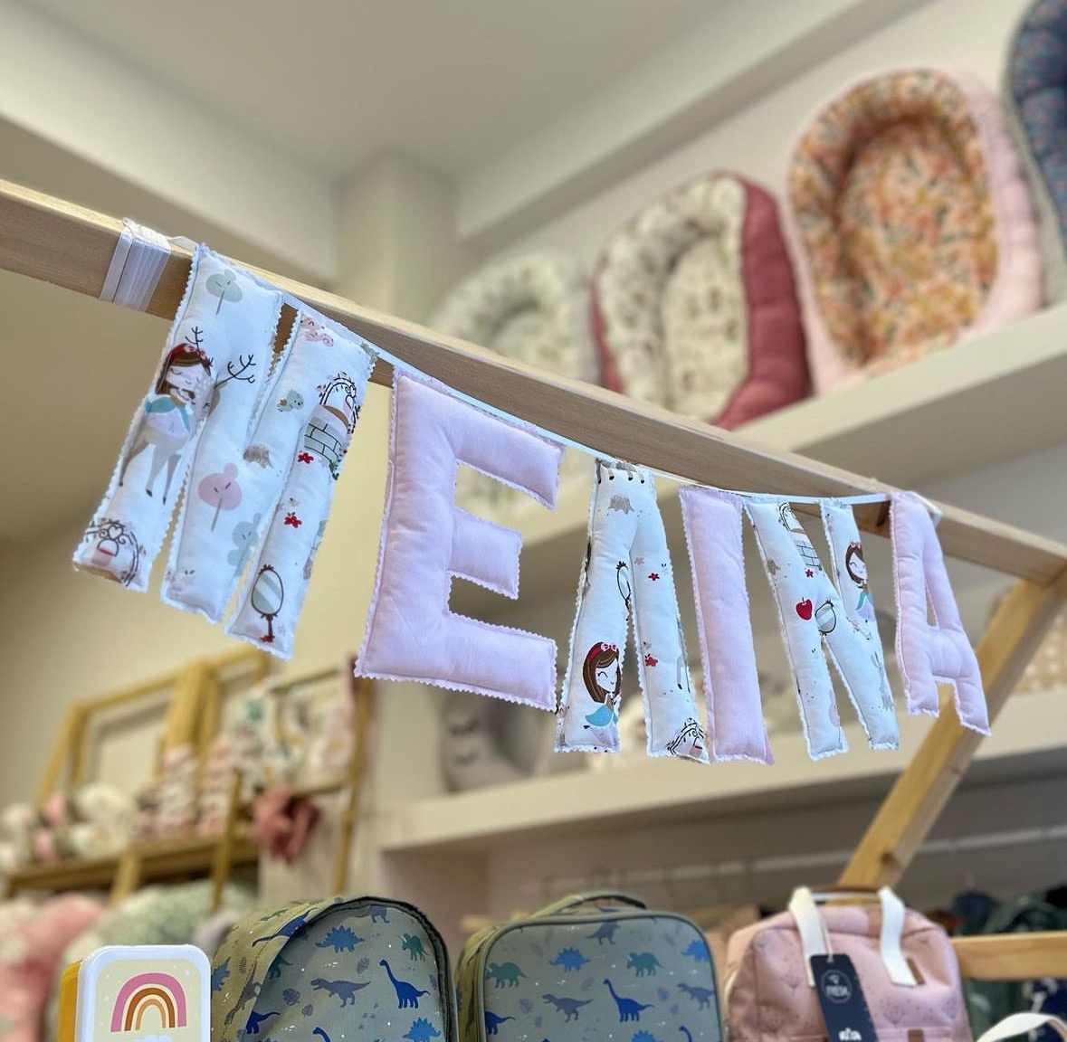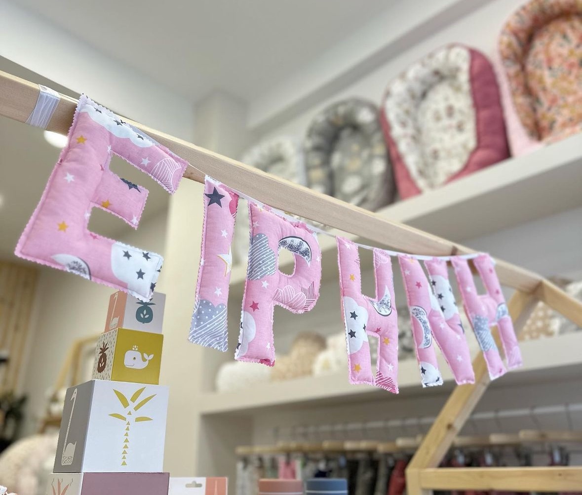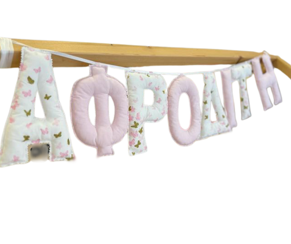 Η γιρλάντα με όνομα γίνεται με τα γράμματα και το ύφασμα της επιλογής σας. Ετοιμάζονται και διακοσμούνται κατά παραγγελία. Ένα δώρο γεμάτο αγάπη, για την βάπτιση,γενέθλια ή για την διακόσμηση του παιδικού δωματίου σας! Κάθε γράμμα έχει μήκος 20 εκατοστά. Τα γράμματα ράβονται από 100% βαμβακερά υφάσματα. Το κάθε γράμμα κοστίζει 6 ευρώ. Γράψτε μας το όνομα και το σχέδιο που επιθυμείτε στα σχόλια. Διαθέσιμα σε 20 εργάσιμες από την εξόφληση της παραγγελίας. Σε περίπτωση ακύρωσης τα χρήματα δεν επιστρέφονται.