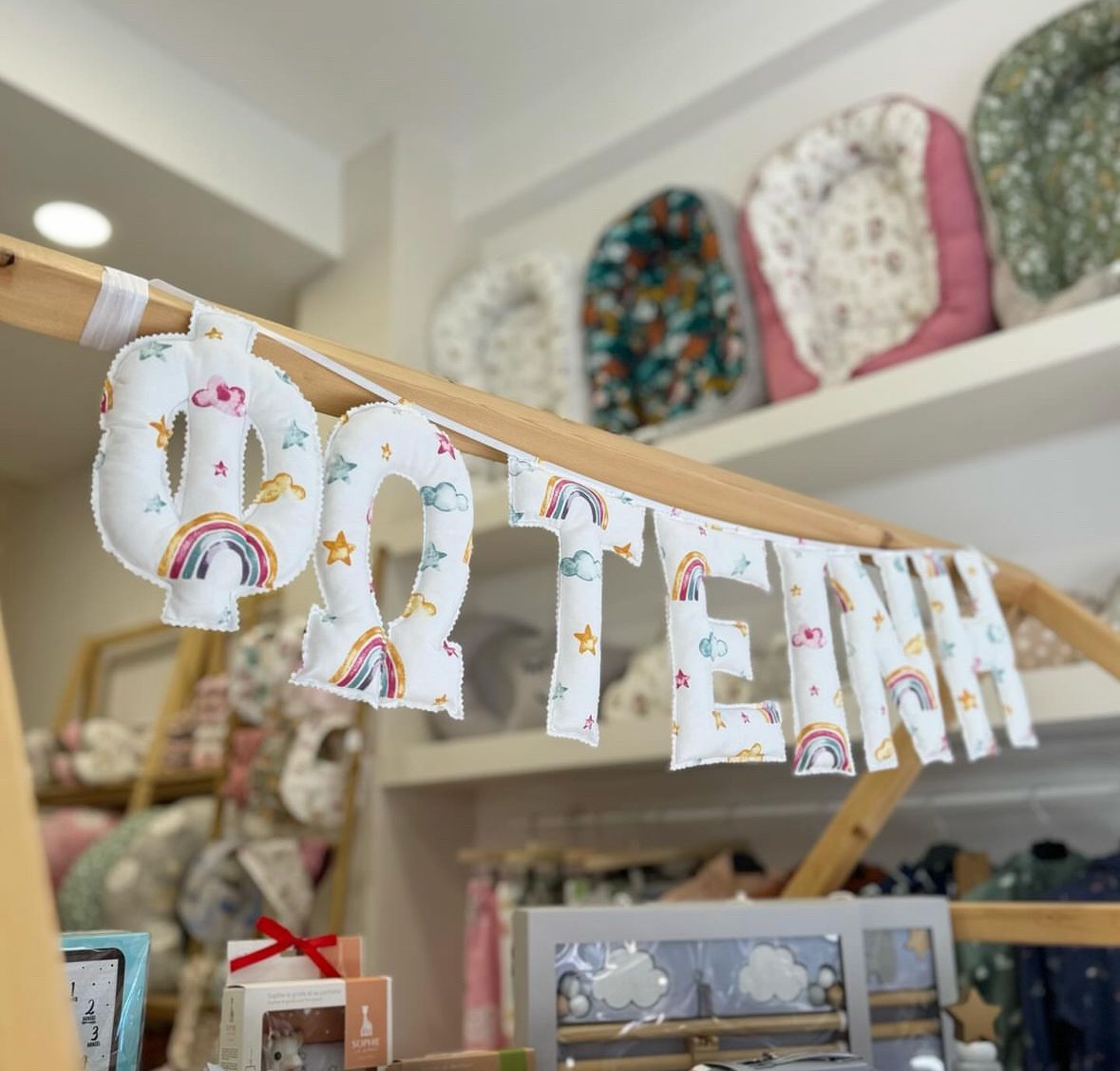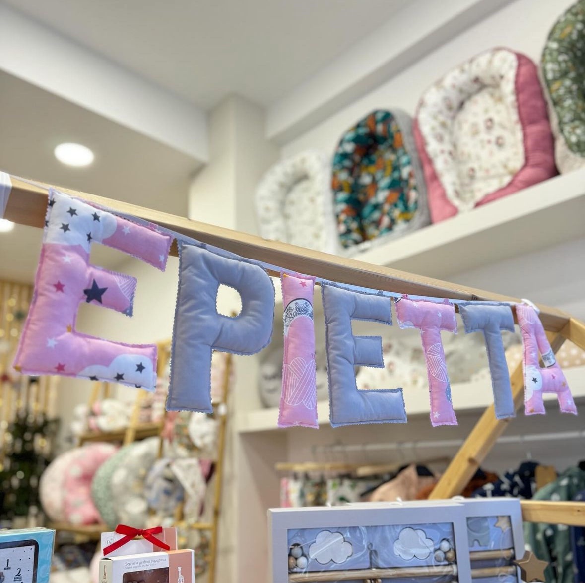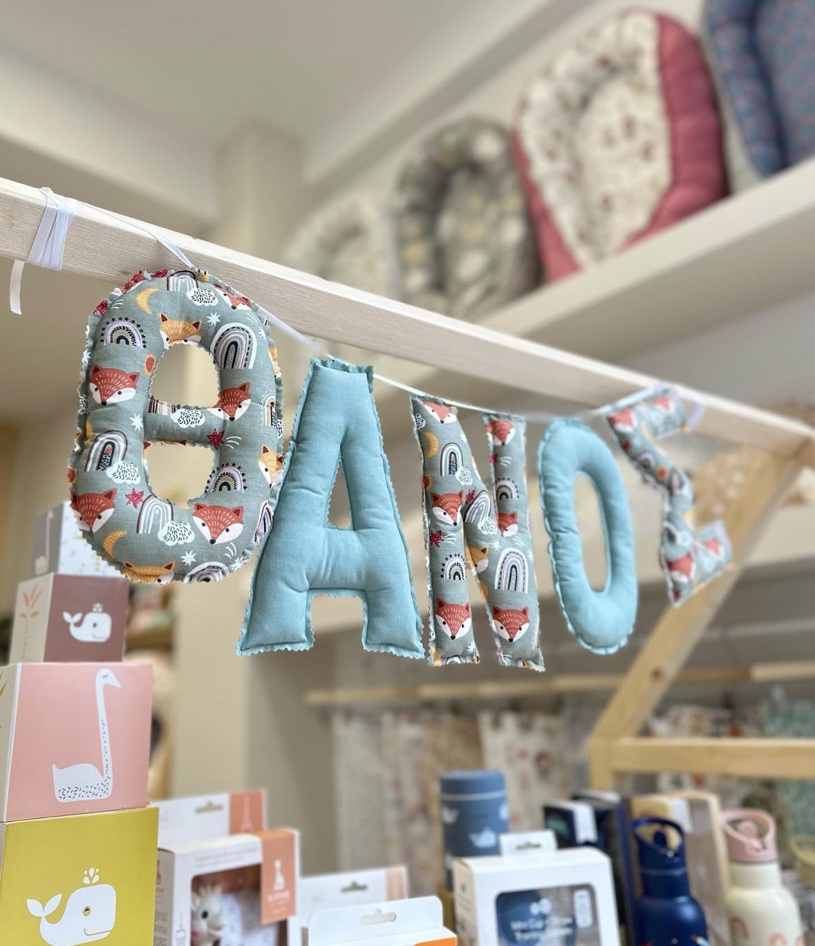 Η γιρλάντα με όνομα γίνεται με τα γράμματα και το ύφασμα της επιλογής σας. Ετοιμάζονται και διακοσμούνται κατά παραγγελία. Ένα δώρο γεμάτο αγάπη, για την βάπτιση,γενέθλια ή για την διακόσμηση του παιδικού δωματίου σας! Κάθε γράμμα έχει μήκος 20 εκατοστά. Τα γράμματα ράβονται από 100% βαμβακερά υφάσματα. Το κάθε γράμμα κοστίζει 6 ευρώ. Γράψτε μας το όνομα και το σχέδιο που επιθυμείτε στα σχόλια. Διαθέσιμα σε 20 εργάσιμες από την εξόφληση της παραγγελίας. Σε περίπτωση ακύρωσης τα χρήματα δεν επιστρέφονται.