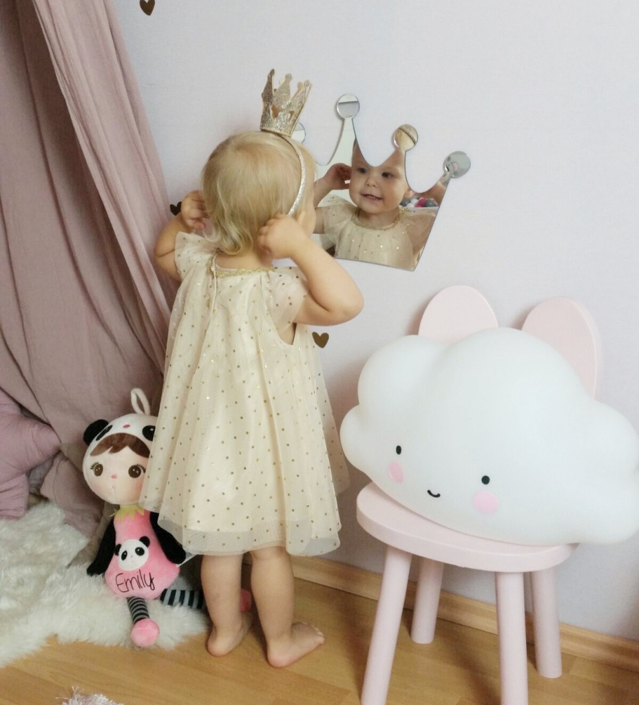 Εξαιρετική πρόταση διακόσμησης του δωματίου του μικρού σας! Αυτός ο όμορφος καθρέφτης θα στολίσει το δωμάτιο και θα διασκεδάσει το παιδάκι σας! Ελαφρύς, αδιάσπαστος ακρυλικός καθρέφτης σε σχήμα κορώνα, για να κρεμιέται στον τοίχο πίσω από το μεταλλικό γάντζο. Διαστάσεις καθρέφτη: 36εκ. x 38εκ. Ο καθρέφτης δεν είναι παιχνίδι.