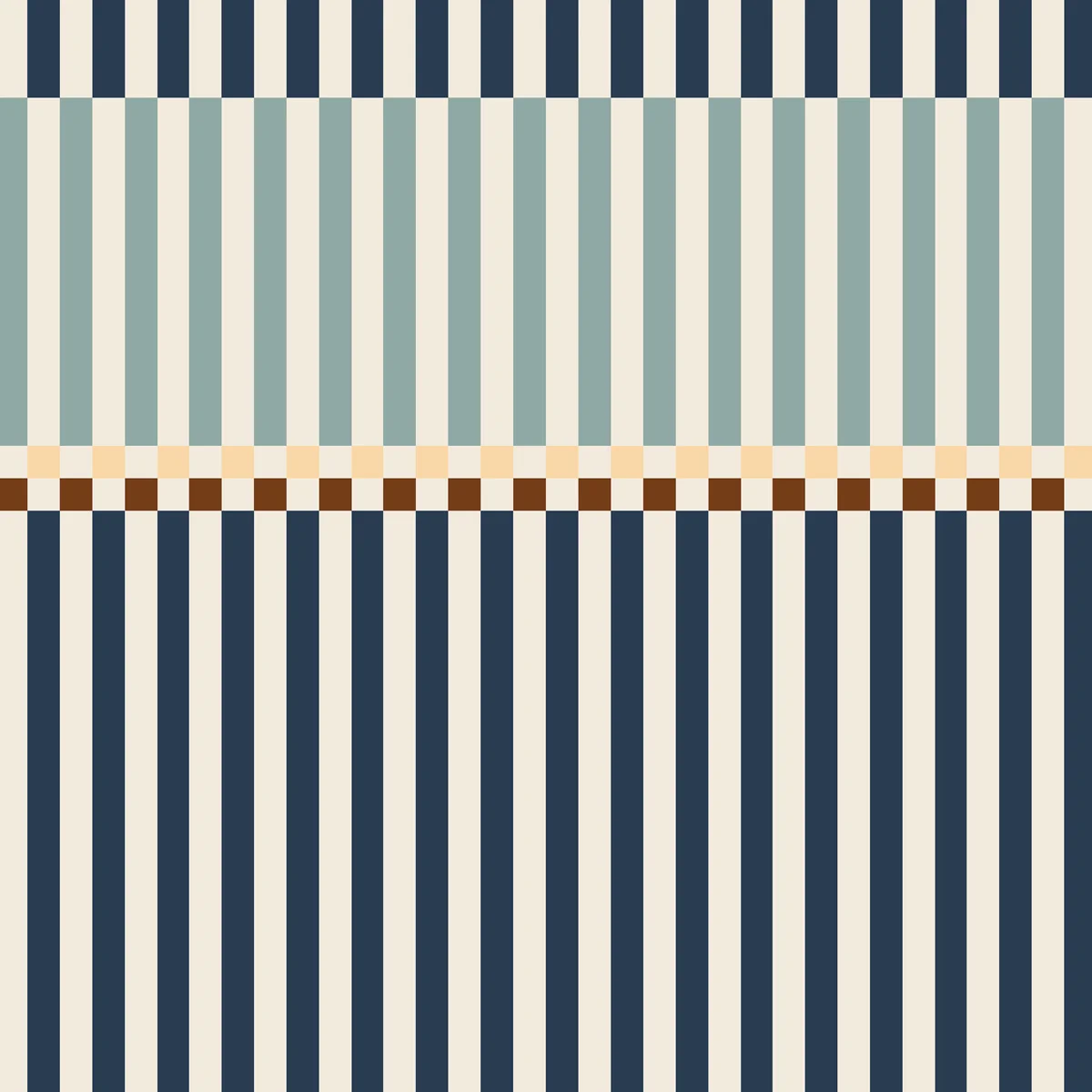 Simple Vintage Stripes Beige Blue Wallpaper Η ταπετσαρία Stripes happy σε 2 χρώματα, μπλε σκούρο και μέντα, έχει σχεδιαστεί για έναν ήρεμο αλλά και διασκεδαστικό παιδικό εσωτερικό χώρο. Μια καθαρή επανάληψη ρίγας που διαβάζεται όμορφα από απόσταση και από κοντά. Ιδανική ως διακοσμητικό τοίχο πίσω από μια κούνια/κρεβάτι ή για να τυλίξει ολόκληρο το δωμάτιο, αν σας αρέσει το σχέδιο. Τυπωμένη σε εκλεπτυσμένο ανακυκλωμένο ματ χαρτί της Dekornik και κατασκευασμένη με οικολογική και ασφαλή νοοτροπία. Το προϊόν αποτελείται από ρολά διαστάσεων: Ύψος: 280 εκ. Πλάτος: 50 εκ. Η τιμή αφορά ένα τεμάχιο. Για τοίχο 2 μέτρων, χρειάζεστε 4 τεμάχια/ ρολά .