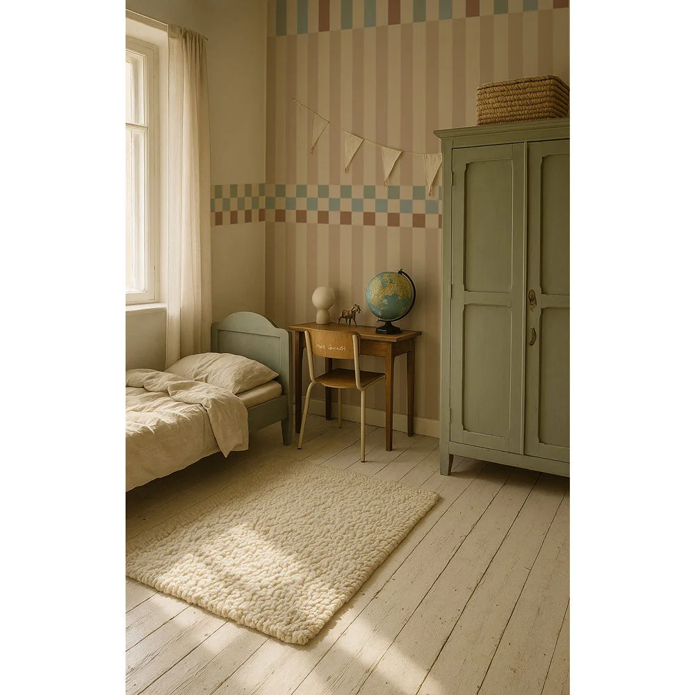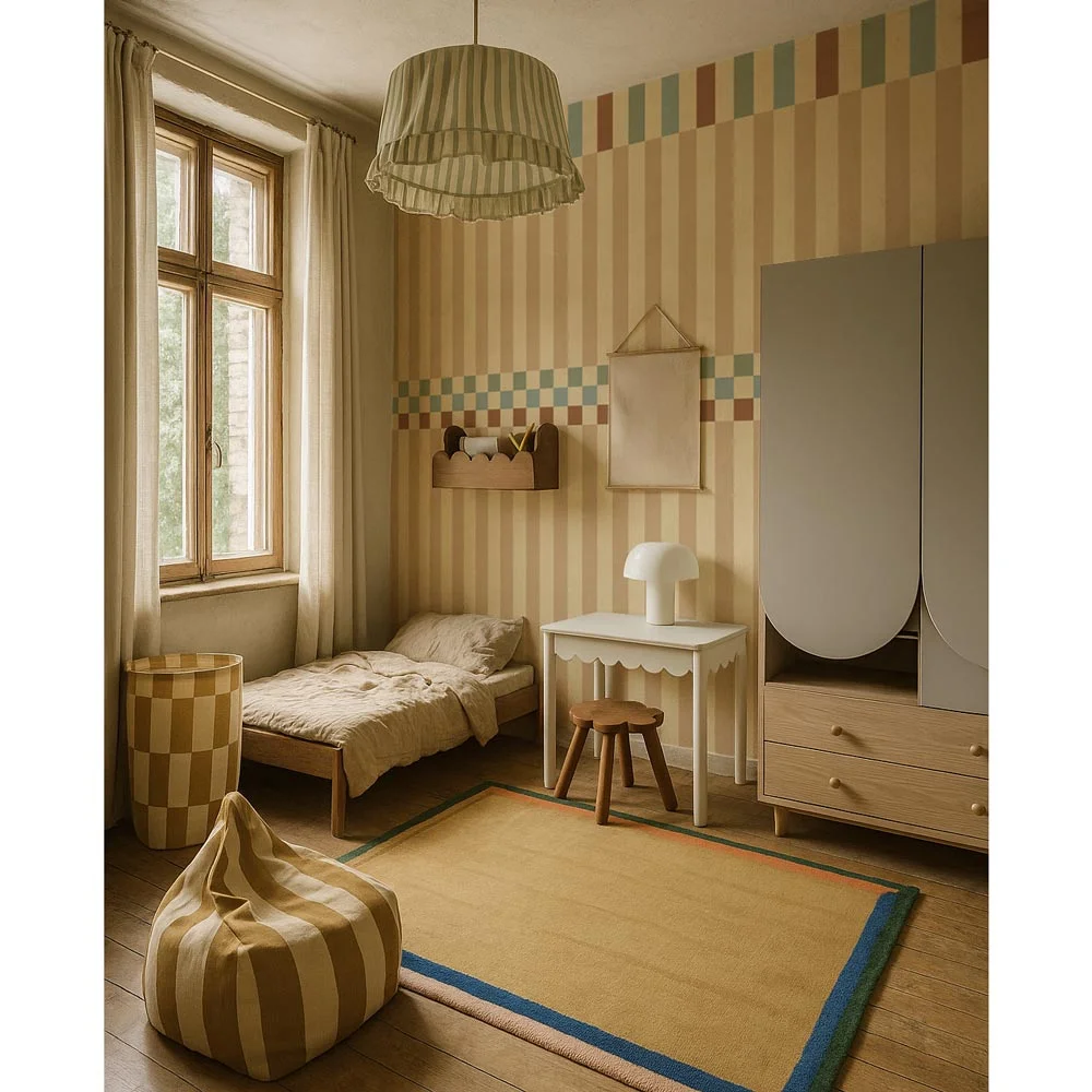 Η ταπετσαρία Stripes nostalgia vintage colors είναι σχεδιασμένη για έναν ήρεμο αλλά διασκεδαστικό παιδικό εσωτερικό χώρο. Μια καθαρή επανάληψη ρίγας που διαβάζεται όμορφα από απόσταση και από κοντά. Ιδανική ως διακοσμητικό τοίχο πίσω από μια κούνια/κρεβάτι ή για να τυλίξει ολόκληρο το δωμάτιο αν σας αρέσει το μοτίβο. Εύκολο να συνδυαστεί με απλά υφάσματα και έπιπλα από φυσικό ξύλο. Τυπωμένη σε εκλεπτυσμένο ματ χαρτί Dekornik και κατασκευασμένη με οικολογική και ασφαλή νοοτροπία. Το προϊόν αποτελείται από ρολά διαστάσεων: Ύψος: 280 εκ. Πλάτος: 50 εκ. Η τιμή αφορά ένα τεμάχιο. Για τοίχο 2 μέτρων, χρειάζεστε 4 τεμάχια/ ρολά .