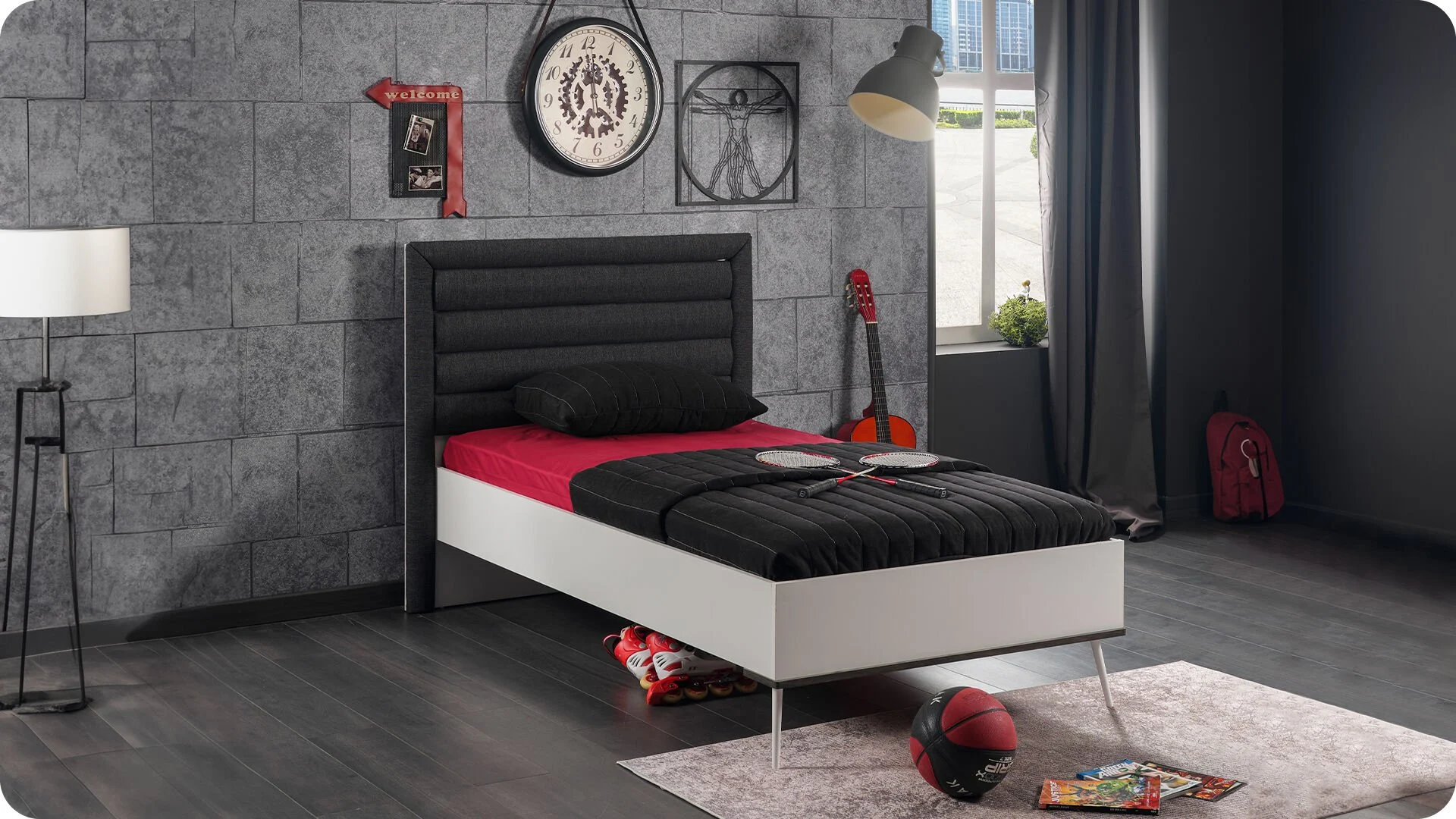 Ιδανικό για στρώμα διαστάσεων 100 x 200 εκ. και 120×200 εκ. , το κρεβάτι είναι κατάλληλο για ένα παιδικό ή εφηβικό δωμάτιο, συνδυάζοντας λειτουργικότητα και στυλ.