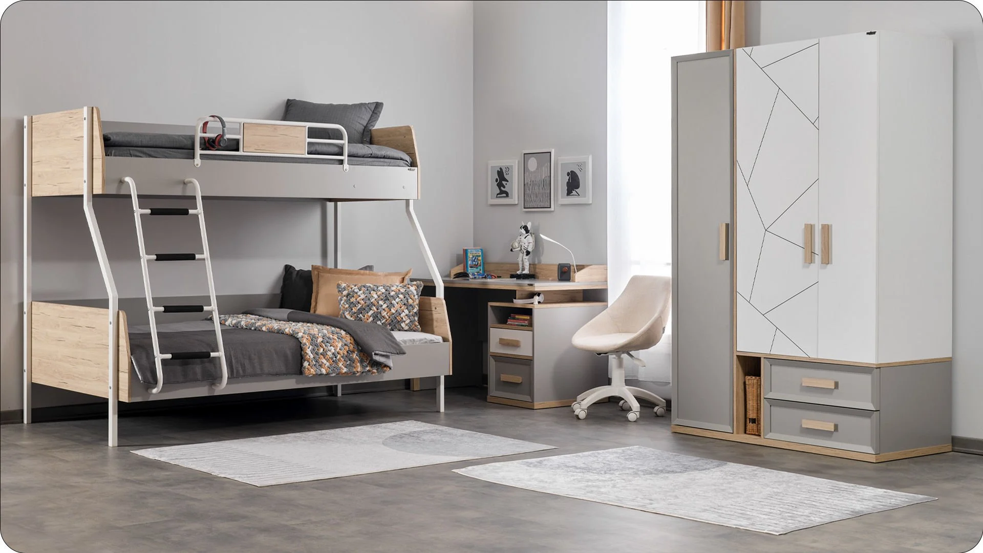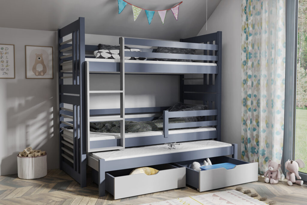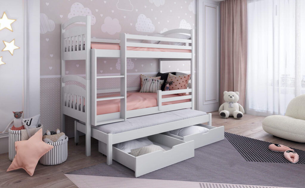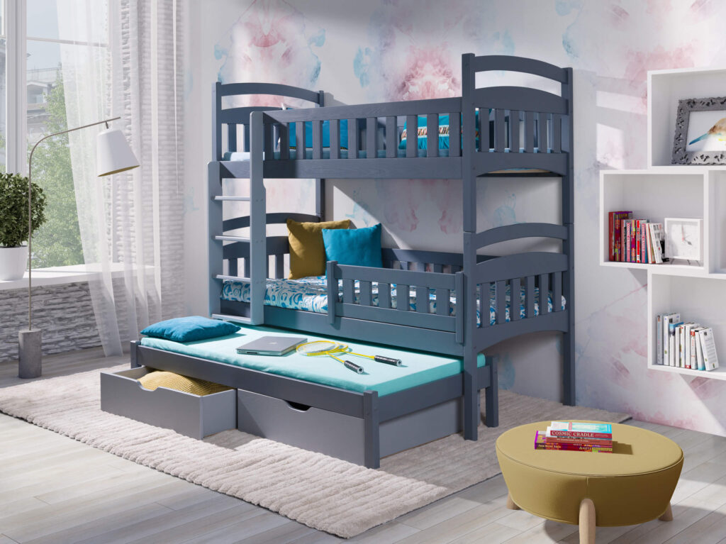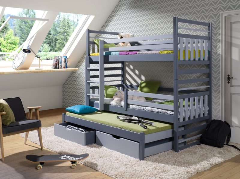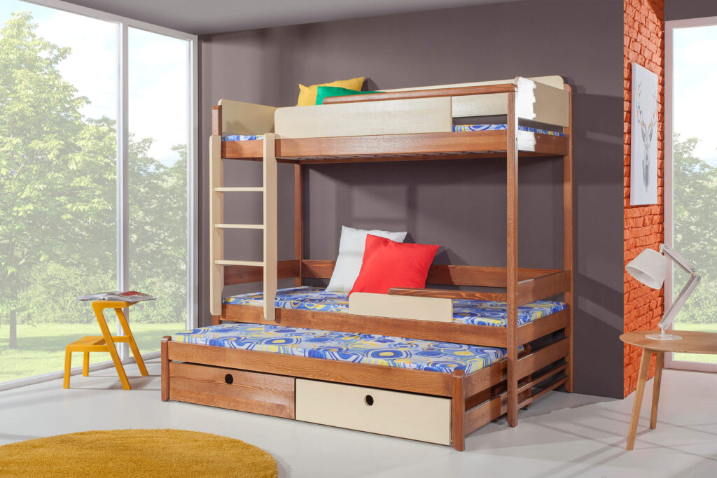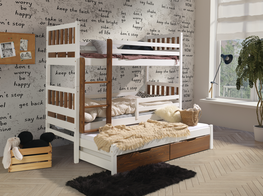 Ανακάλυψε τη μαγεία της συλλογής Evon ! Με πάνω κρεβάτι διαστάσεων 90 x 200 εκ., κάτω κρεβάτι 1,20 x 200 εκ. προσβάσιμα μέσω της στιλάτης και ασφαλούς σκάλας, το δωμάτιο γίνεται ένας χώρος για παιχνίδι, ξεκούραση και χαρούμενες στιγμές με φίλους ή αδέρφια. Ανθεκτική, πρακτική και γεμάτη στυλ – η Evon μεγαλώνει μαζί με τα παιδιά! Άνω κρεβάτι 90X200 – Κάτω κρεβάτι 120X200