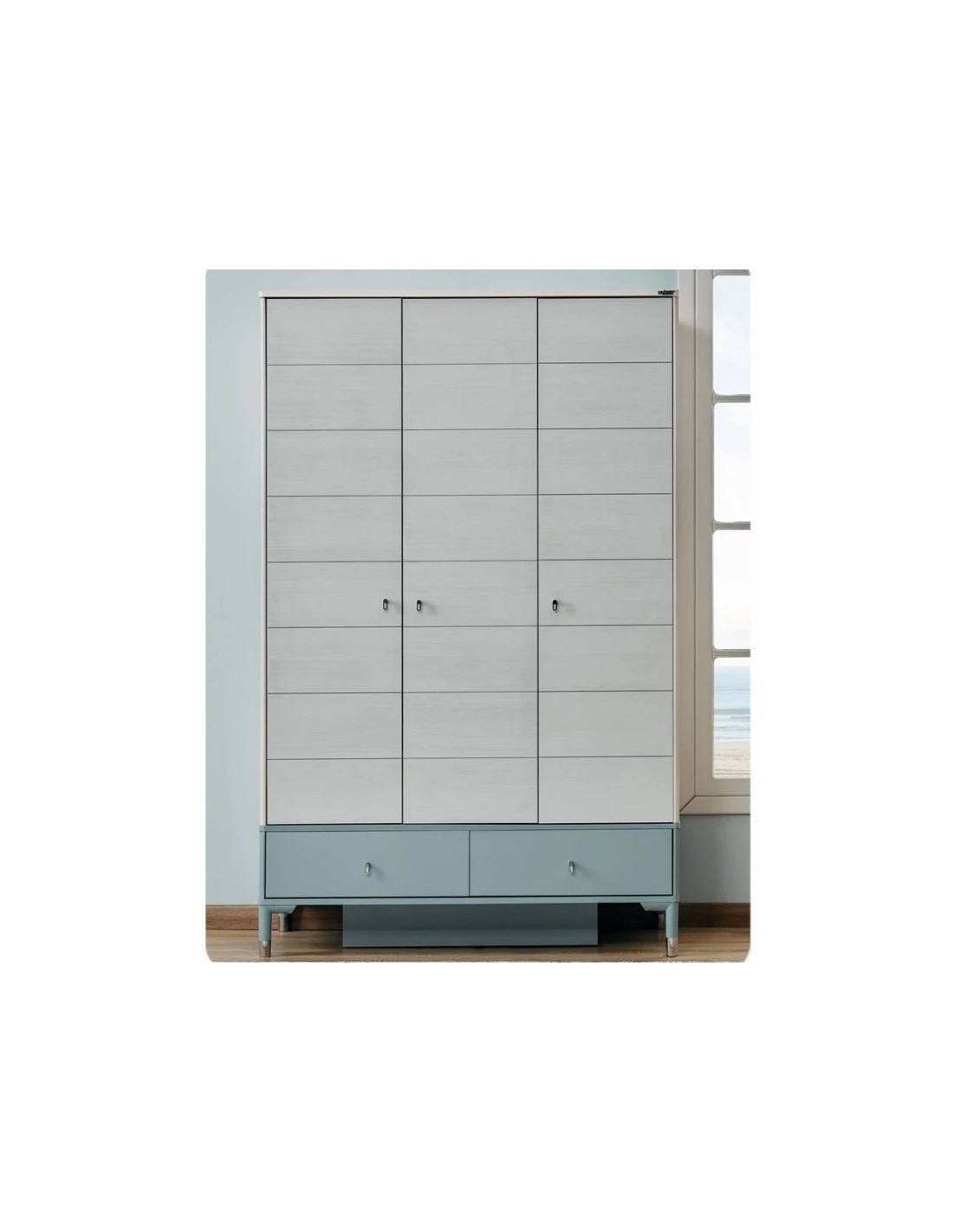 Η τρίφυλλη ντουλάπα Marine Blue συνδυάζει λειτουργικότητα και αισθητική, ιδανική για την οργάνωση κάθε χώρου.