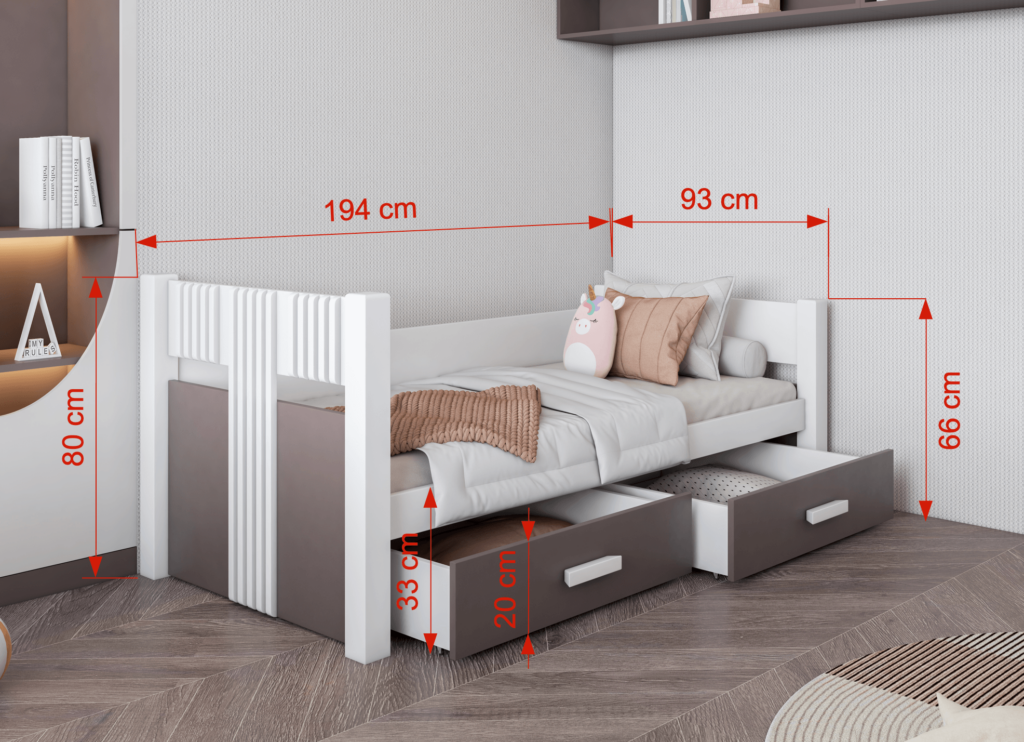 Χαρακτηριστικά προϊόντος: Μοριοσανίδα γενικής χρήσης με επένδυση μελαμίνης Σχέδιο με χάραξη λέιζερ στο υποπόδιο Στρογγυλεμένες, μαλακές γωνίες για προστασία από χτυπήματα και τραυματισμούς Διαθέτει αποθηκευτικό χώρο με μηχανισμό ασφαλείας, αμορτισέρ και κλειδαριά ασφαλείας Μέγιστη αντοχή βάρους: 130 κιλά Εσωτερική διάσταση στρώματος: 120 x 200 εκ. ή 120 x 200 εκ. Ισχυρή και ανθεκτική κατασκευή για χρήση πολλών ετών Ιδανικό για στρώμα διαστάσεων 100 x 200 εκ. και 120×200 εκ. , το κρεβάτι είναι κατάλληλο για ένα παιδικό ή εφηβικό δωμάτιο, συνδυάζοντας λειτουργικότητα και στυλ. Χαρακτηριστικά & Προνόμια Συμπεριλαμβάνονται Στην παραπάνω τιμή δεν περιλαμβάνεται η συναρμολόγηση.