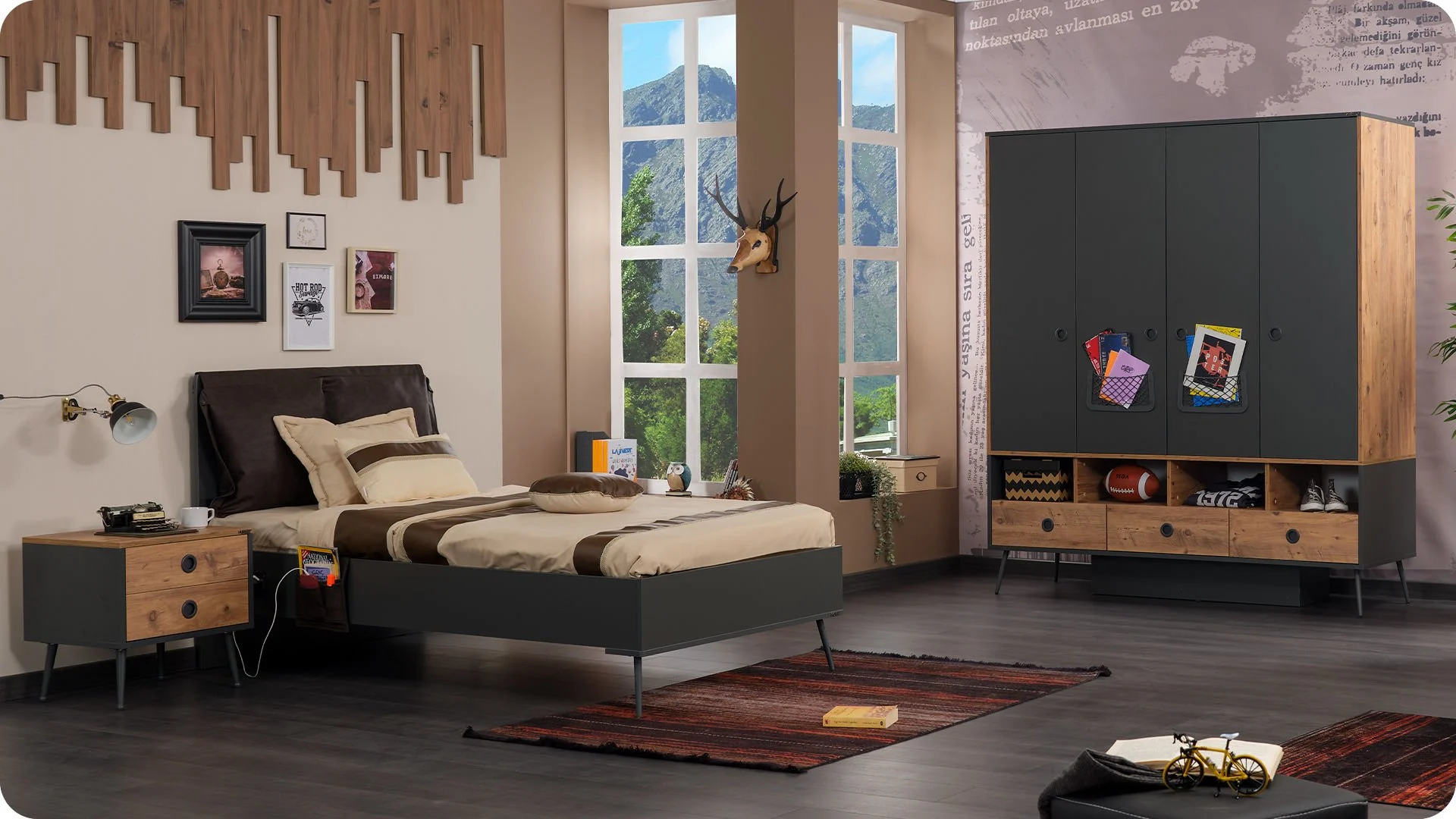 Η στιβαρή κατασκευή και τα μοντέρνα μεταλλικά στοιχεία στις λαβές και στα πόδια προσδίδουν κομψότητα και σταθερότητα. Η ντουλάπα αποτελεί μια ολοκληρωμένη λύση αποθήκευσης, ιδανική για τη διατήρηση της τάξης και της οργάνωσης σε κάθε παιδικό δωμάτιο.