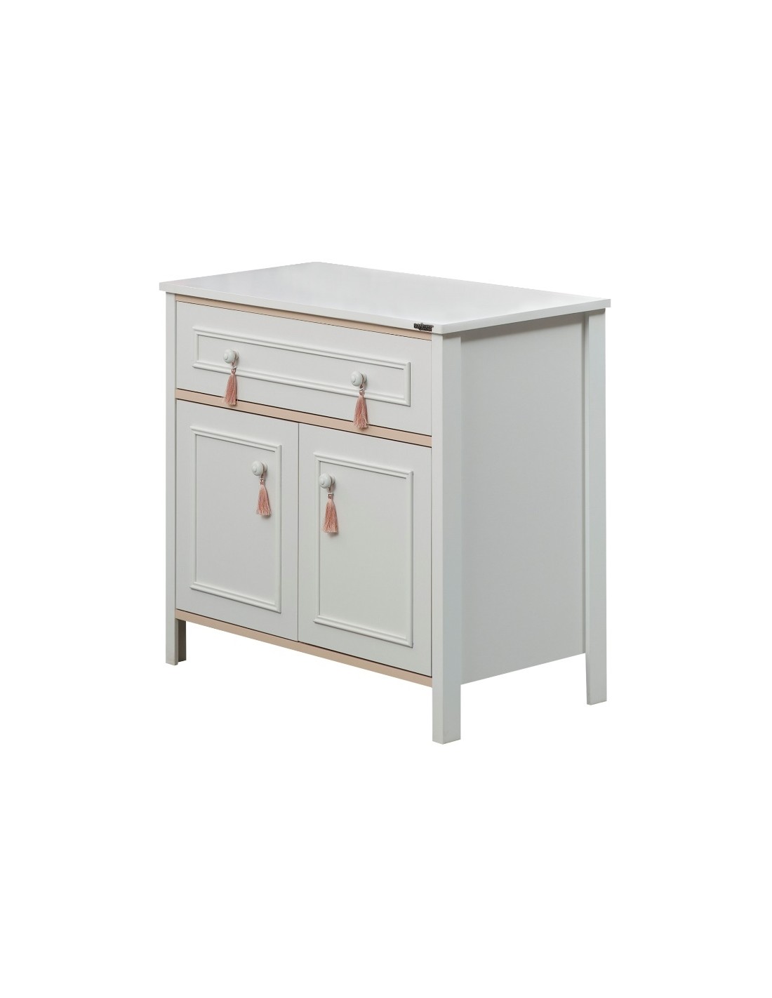 Οι ροζ λεπτομέρειες και τα στρογγυλά πόμολα προσδίδουν μια ρομαντική και μοντέρνα αισθητική που ταιριάζει ιδανικά σε παιδικά και εφηβικά δωμάτια.
