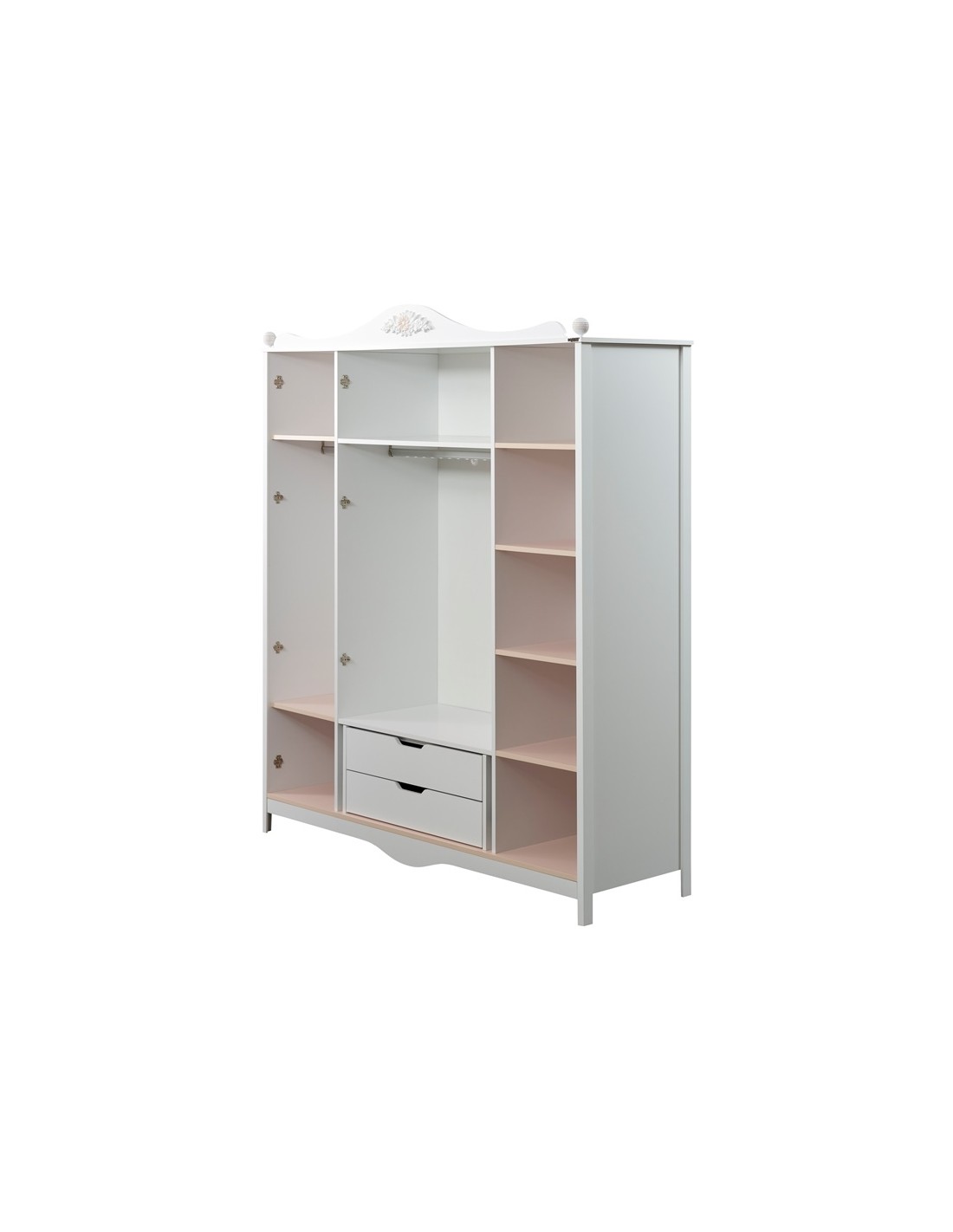 Η Τρίφυλλη Ντουλάπα διαθέτει μια ράγα και τρία ράφια και τεχνολογία soft-closing και ταιριάζει σε κάθε βρεφικό υπνοδωμάτιο.