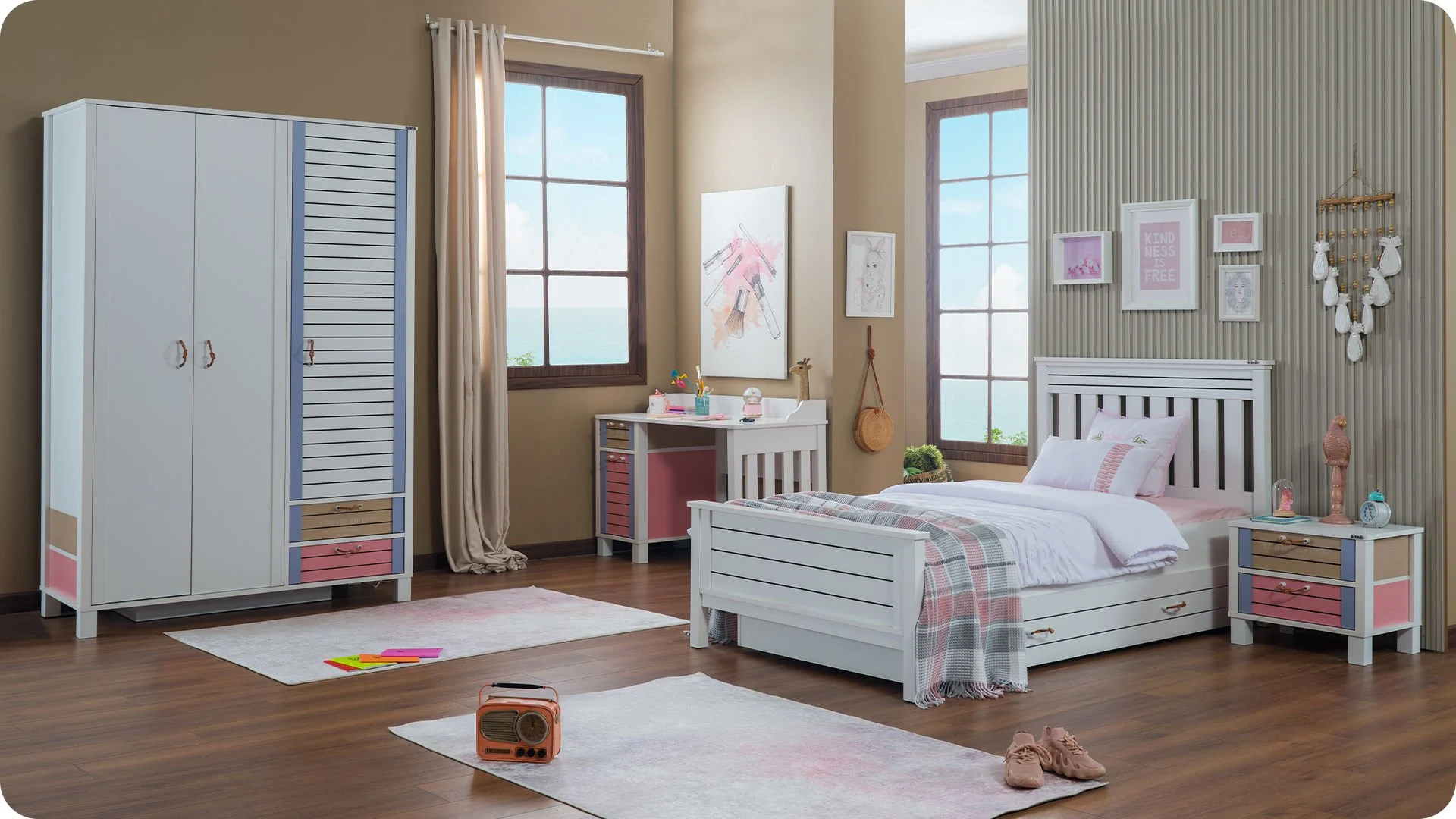 Ο μοντέρνος σχεδιασμός της με απαλές αποχρώσεις ροζ και λευκού την καθιστά ιδανική για παιδικά ή νεανικά δωμάτια, προσθέτοντας στυλ και οργάνωση στον χώρο σας.