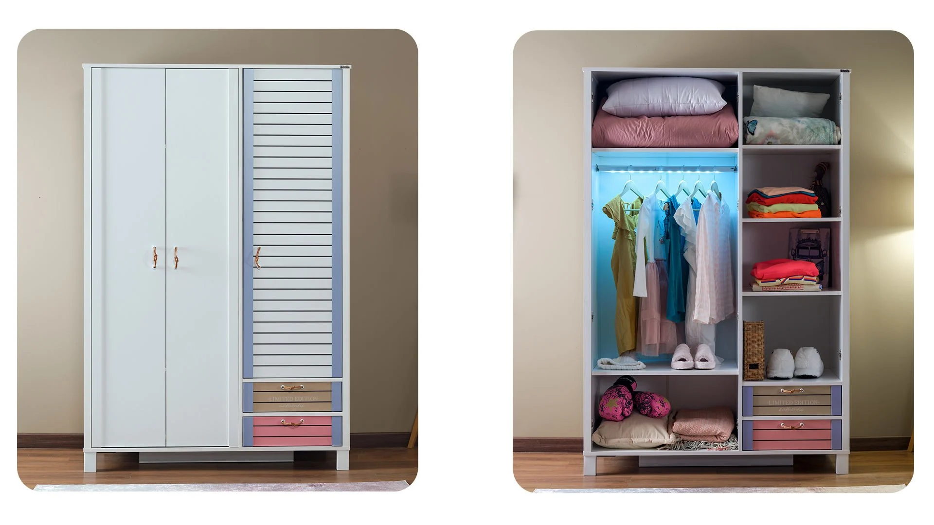 Η τρίφυλλη ντουλάπα Hayal συνδυάζει λειτουργικότητα και αισθητική, ιδανική για την οργάνωση κάθε χώρου.