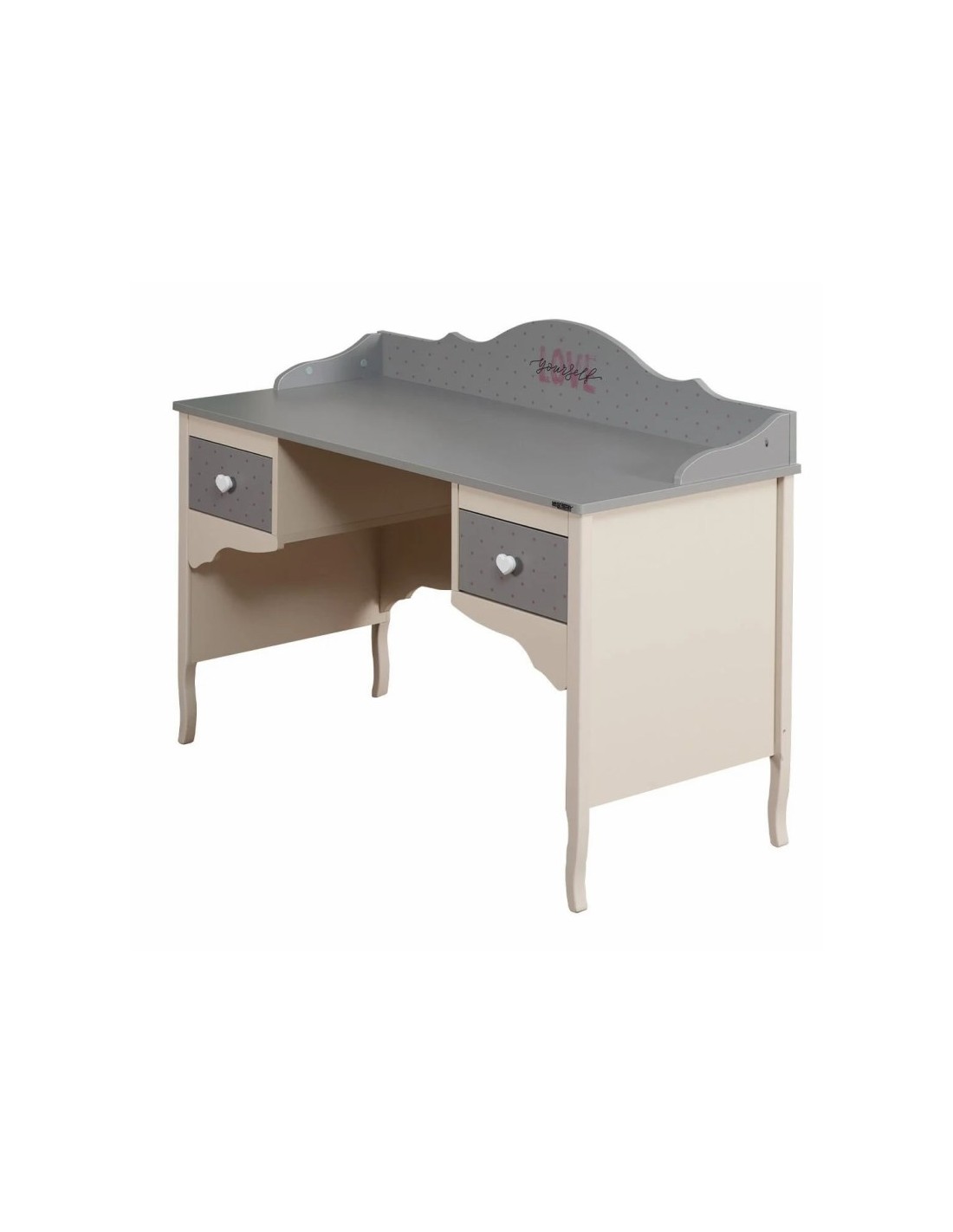 Το γραφείο Juliet είναι μια κομψή και πρακτική επιλογή για παιδικά και εφηβικά δωμάτια, που συνδυάζει ρομαντική αισθητική και λειτουργικότητα. Ο σχεδιασμός του, με καμπύλες γραμμές και λεπτομέρειες σε γκρι και κρεμ τόνους, προσδίδει μια ζεστή και καλαίσθητη αίσθηση στο χώρο.