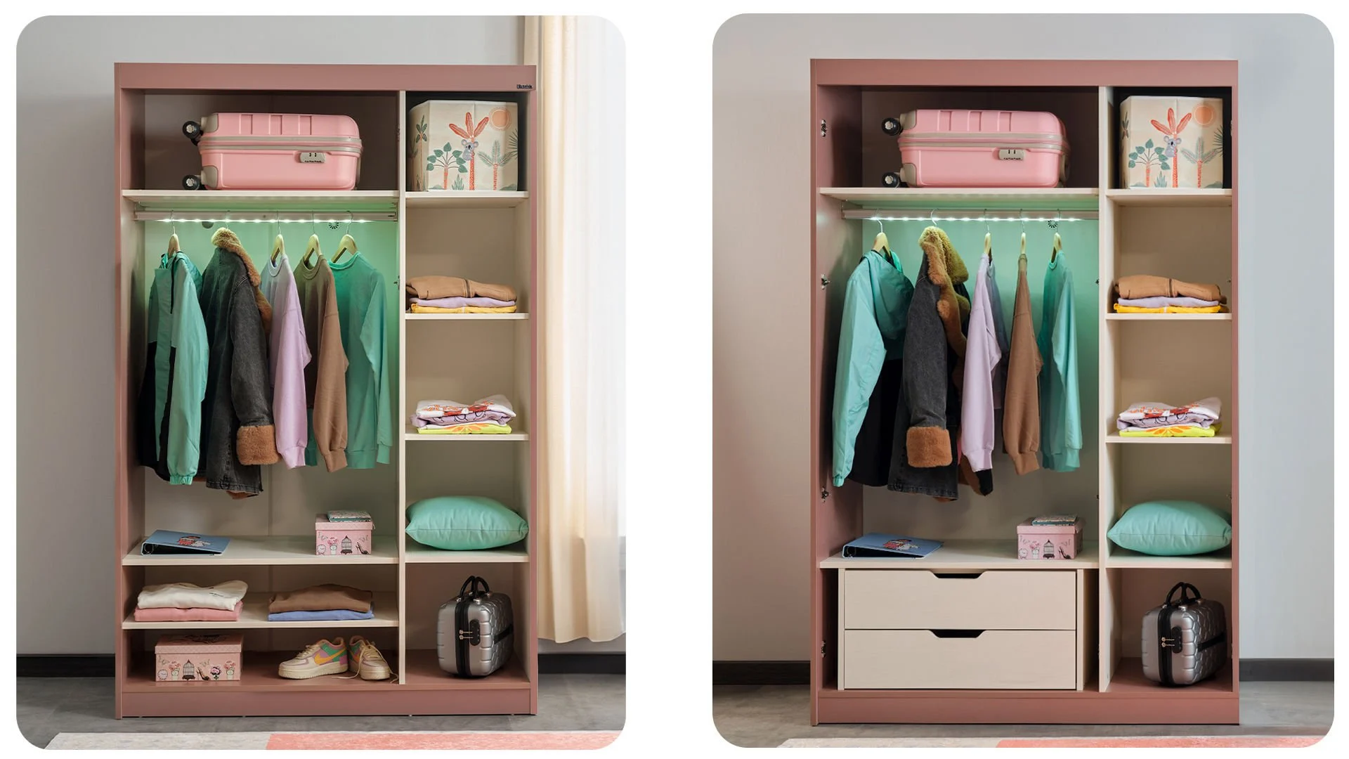 Η τρίφυλλη ντουλάπα Linda συνδυάζει λειτουργικότητα και αισθητική, ιδανική για την οργάνωση κάθε χώρου. Με ευρύχωρους αποθηκευτικούς χώρους, κρεμάστρες, ράφια και δύο (προαιρετικά) συρτάρια στη βάση, προσφέρει πρακτικότητα για ρούχα και αξεσουάρ. Ο μοντέρνος σχεδιασμός της με απαλές αποχρώσεις ροζ και λευκού την καθιστά ιδανική για παιδικά ή νεανικά δωμάτια, προσθέτοντας στυλ και οργάνωση στον χώρο σας. * Μοριοσανίδα γενικής χρήσης με επικάλυψη μελαμίνης και προφίλ mdf με επικάλυψη pvc Η συναρμολόγηση δεν περιλαμβάνεται στην παραπάνω τιμή.