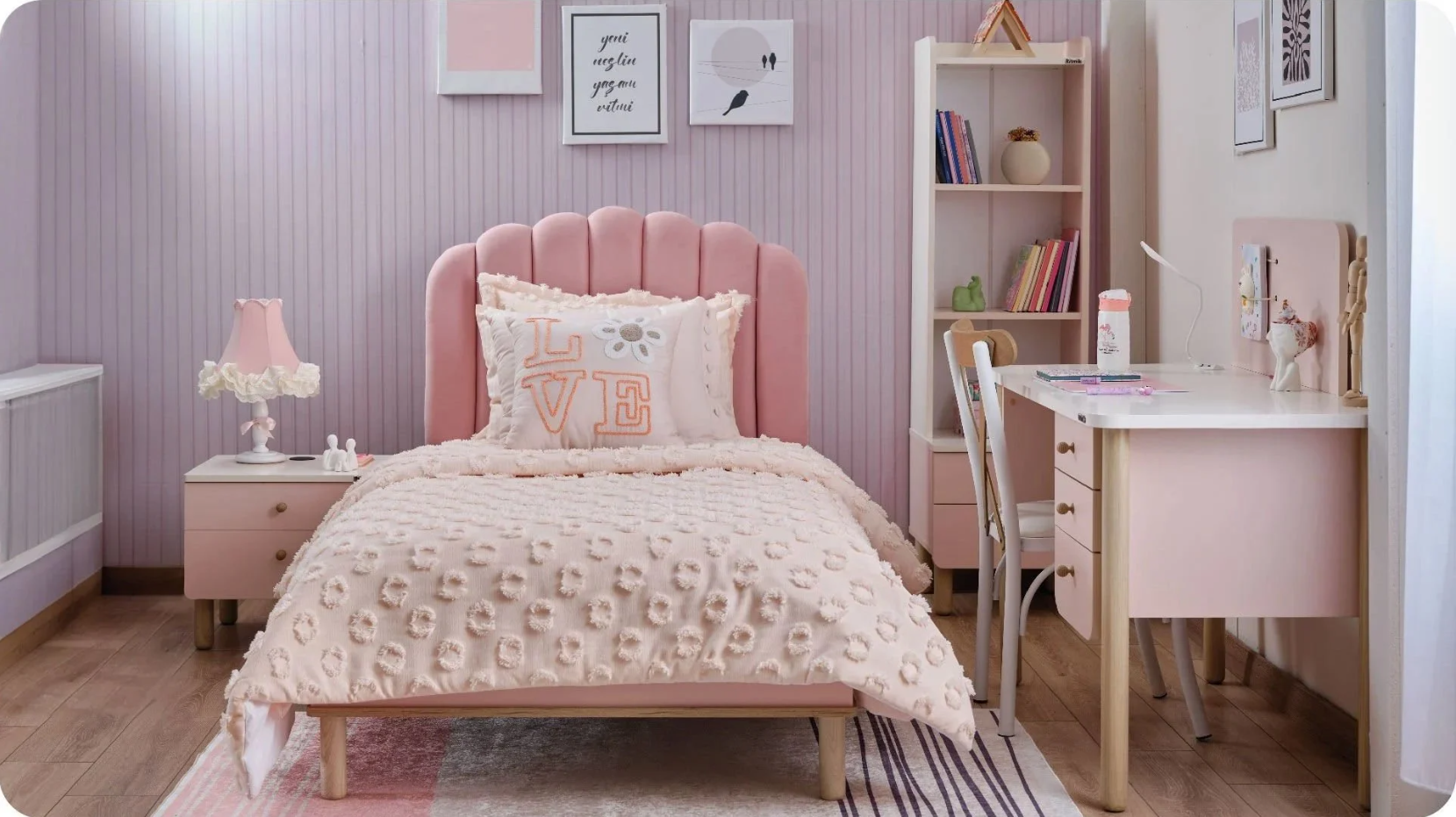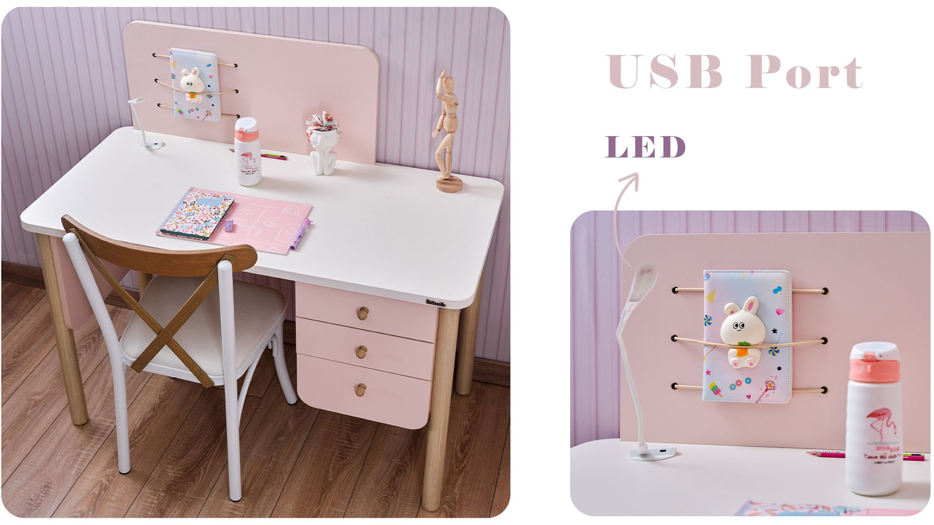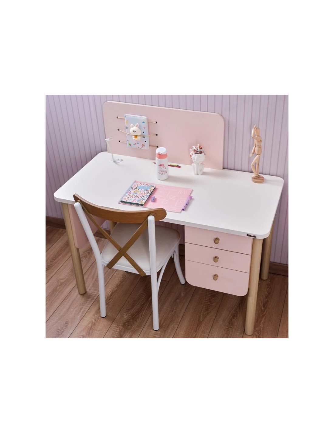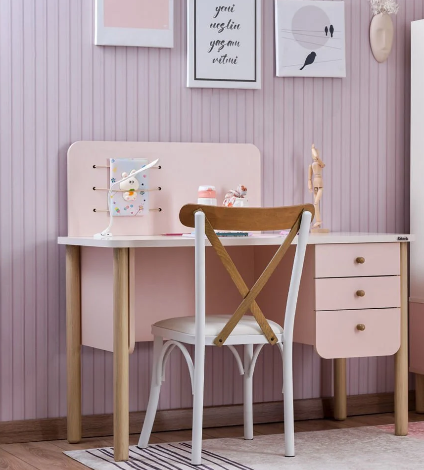 Δώστε στο παιδί σας τον ιδανικό χώρο για μελέτη και δημιουργία με αυτό το μοντέρνο παιδικό γραφείο. Ο συνδυασμός απαλού ροζ και φυσικού ξύλου δημιουργεί μια ζεστή και ευχάριστη ατμόσφαιρα που ενθαρρύνει τη συγκέντρωση αλλά και τη φαντασία.