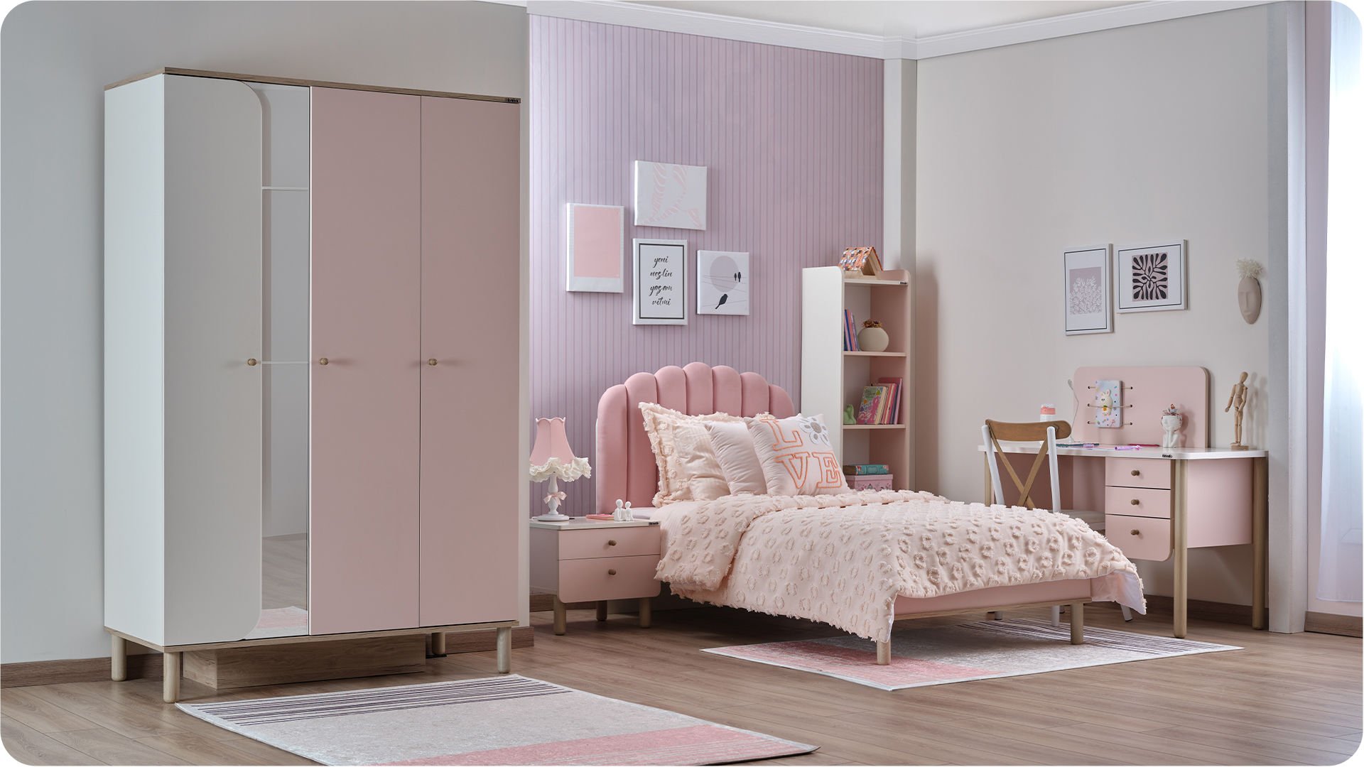 Ο μοντέρνος σχεδιασμός της με απαλές αποχρώσεις γκρι και λευκού την καθιστά ιδανική για παιδικά ή νεανικά δωμάτια, προσθέτοντας στυλ και οργάνωση στον χώρο σας.