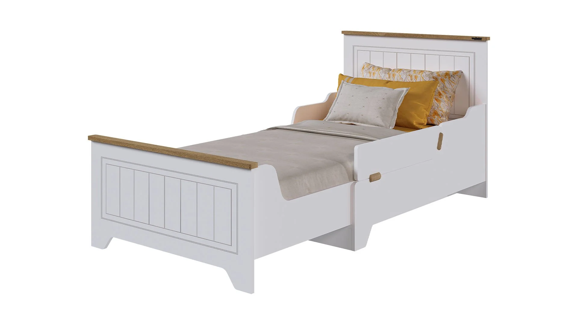 Επεκτεινόμενο Κρεβάτι Bella Ανακαλύψτε την ιδανική λύση για το παιδικό δωμάτιο με το επεκτεινόμενο παιδικό κρεβάτι μας, σχεδιασμένο για να μεγαλώνει μαζί με το παιδί σας. Κατασκευασμένο από υψηλής ποιότητας, ανθεκτικά υλικά, προσφέρει σταθερότητα και ασφάλεια σε κάθε χρήση. Το έξυπνο σύστημα επέκτασης επιτρέπει στο κρεβάτι να προσαρμόζεται στις ανάγκες του παιδιού, μετατρέποντάς το από ένα μικρό κρεβάτι για νήπια σε ένα μεγαλύτερο κρεβάτι για παιδιά ή και εφήβους. Ιδανικό για γονείς που θέλουν να επενδύσουν σε ένα προϊόν που προσφέρει μακροχρόνια χρήση χωρίς να θυσιάζουν την άνεση.