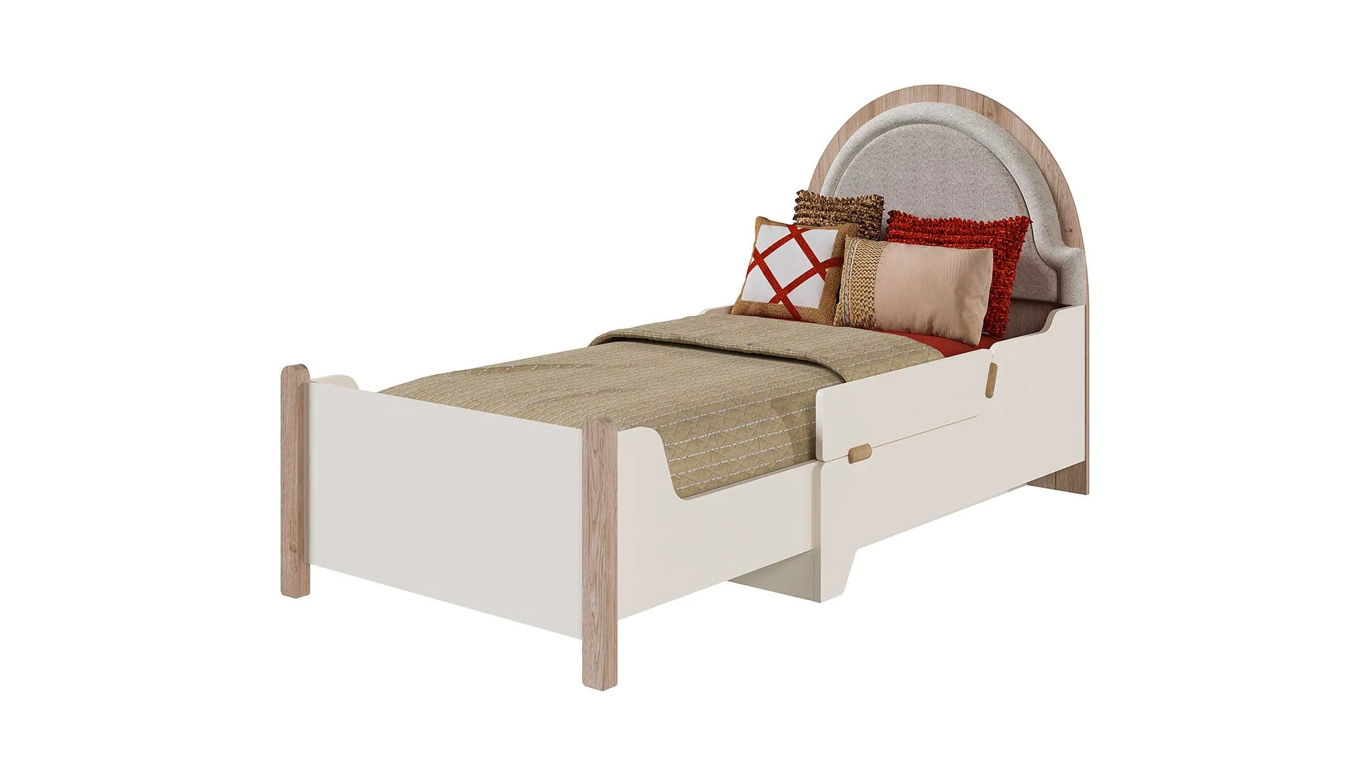 - Χάρη στον μηχανισμό ολίσθησης, μπορεί να ρυθμιστεί ώστε να λειτουργεί τόσο ως παρκοκρέβατο 90×130 cm όσο και ως κρεβάτι 90×200 cm.