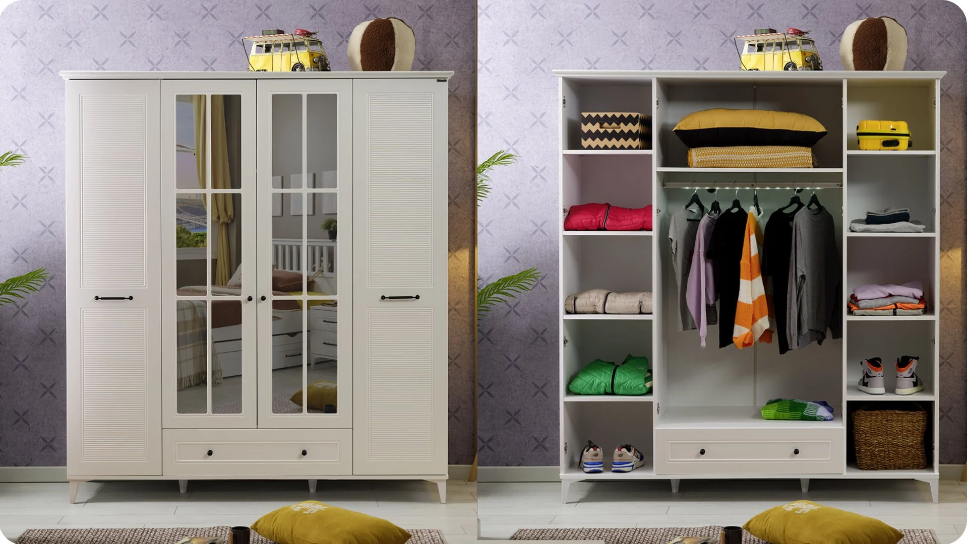 Η τετράφυλλη ντουλάπα Golf συνδυάζει λειτουργικότητα και αισθητική, ιδανική για την οργάνωση κάθε χώρου.