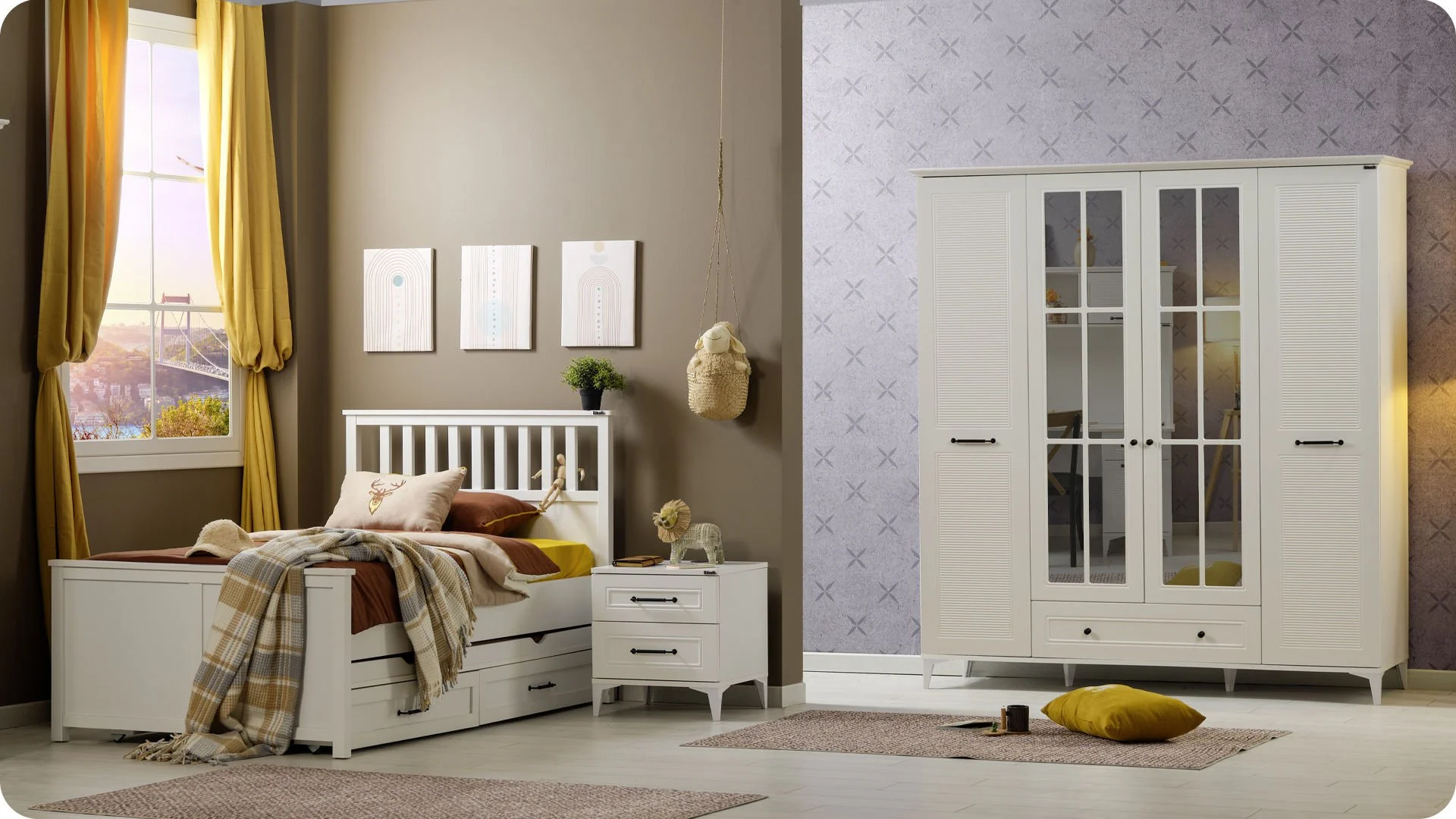Η Τετράφυλλη Ντουλάπα Golf διαθέτει ράγες, ράφια και συρτάρια με μηχανισμούς soft-close για αθόρυβη χρήση, και ταιριάζει σε κάθε παιδικο ή/και εφηβικό υπνοδωμάτιο. Χαρακτηριστικά: Συμπεριλαμβάνονται Η συναρμολόγηση δεν περιλαμβάνεται στην παραπάνω τιμή.