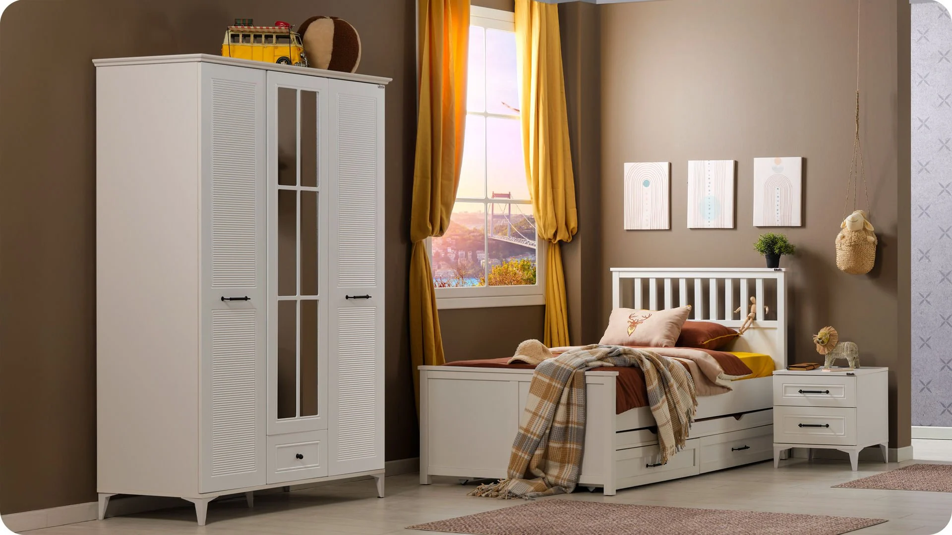Η στιβαρή κατασκευή και τα μοντέρνα μεταλλικά στοιχεία στις λαβές και στα πόδια προσδίδουν κομψότητα και σταθερότητα. Η ντουλάπα αποτελεί μια ολοκληρωμένη λύση αποθήκευσης, ιδανική για τη διατήρηση της τάξης και της οργάνωσης σε κάθε παιδικό δωμάτιο.