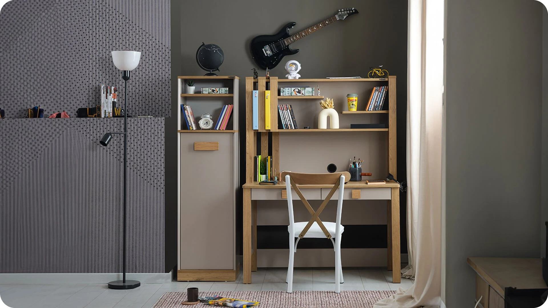 Η βιβλιοθήκη Huga έχει ένα κομψό και λειτουργικό σχέδιο, κατάλληλο για παιδικό δωμάτιο ή μικρούς χώρους.