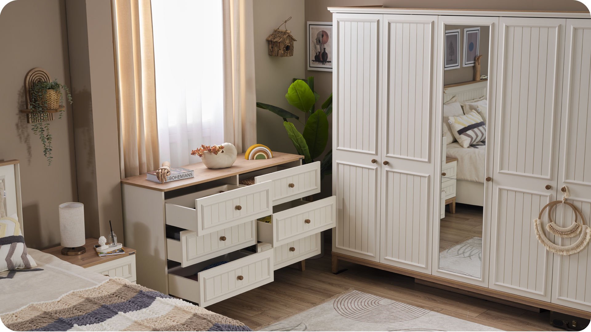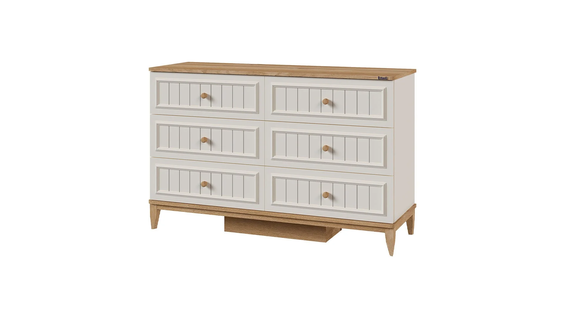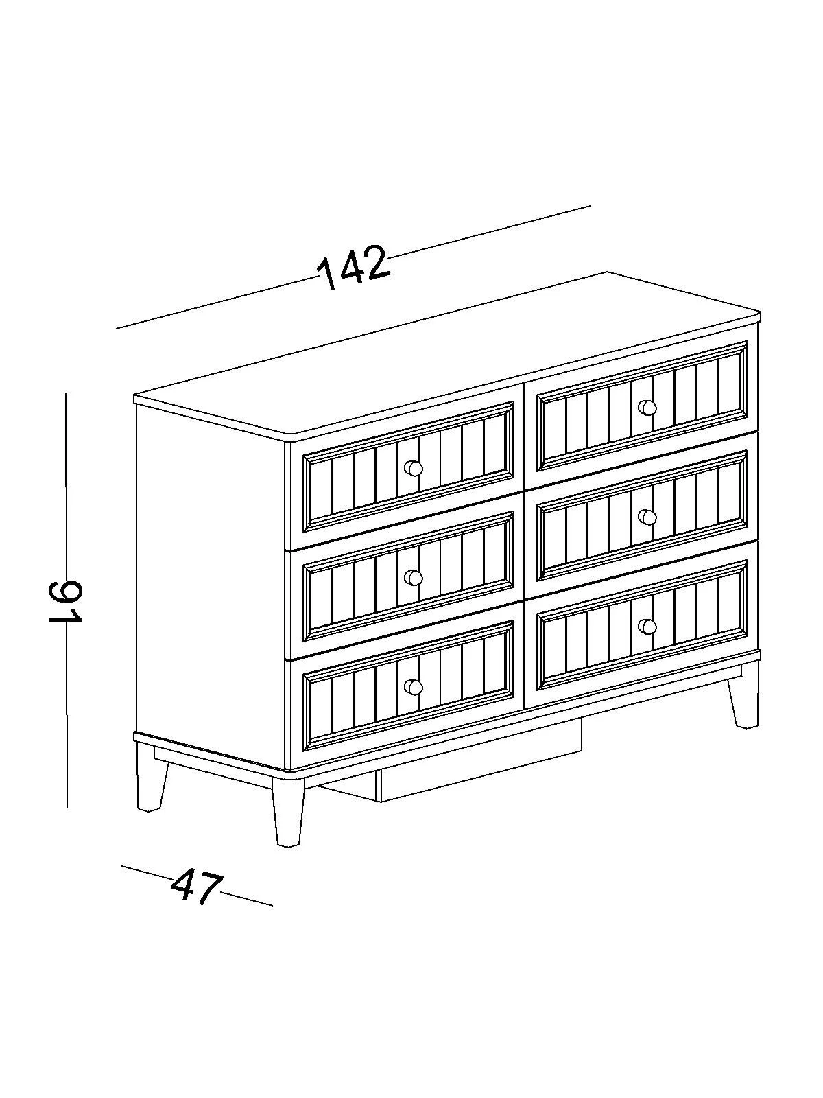 Διαθέτει έξι ευρύχωρα συρτάρια σε άσπρο χρώμα , που προσδίδουν μια ρομαντική και μοντέρνα πινελιά.