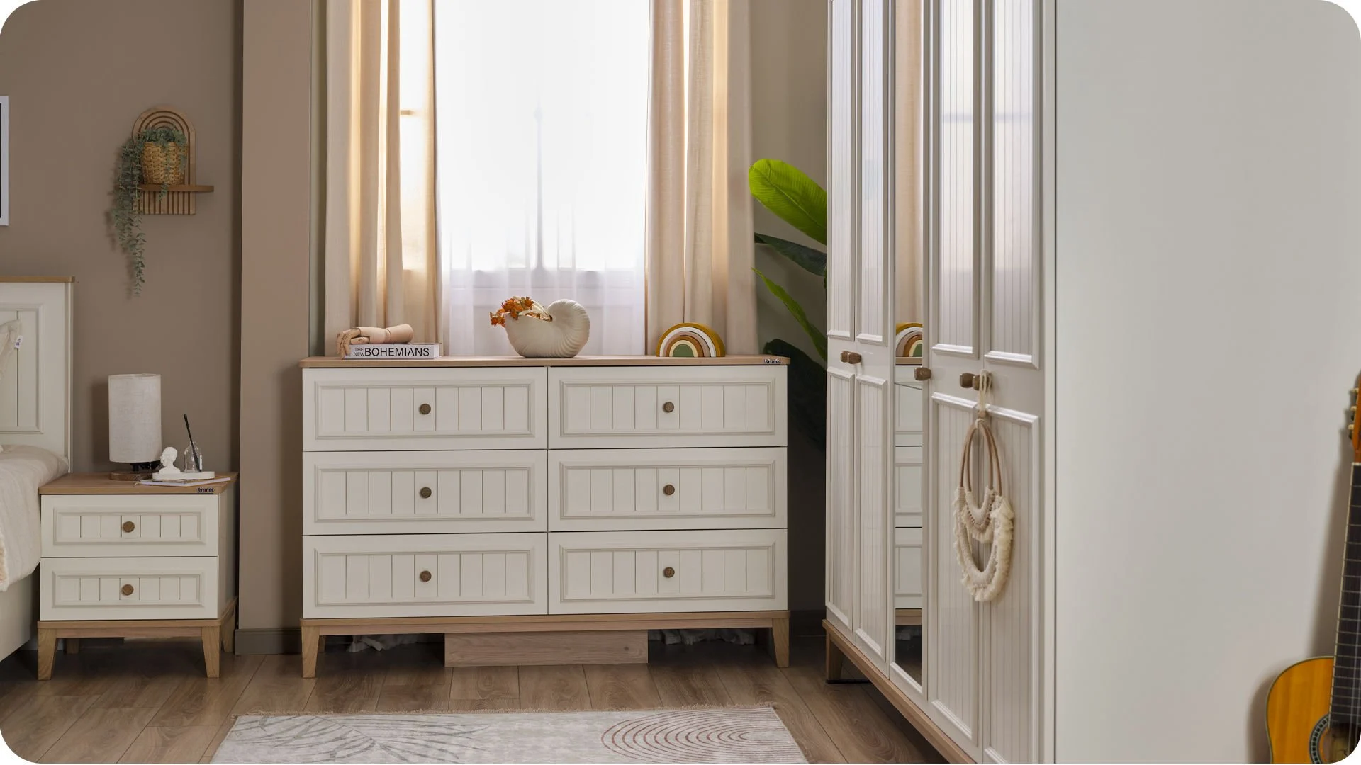 Ιδανική για υπνοδωμάτια ή χώρους με ανάγκη αποθήκευσης και στυλ.