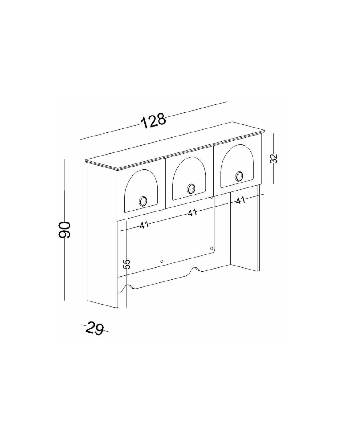 - Επιπλέον Ράφια: Περιλαμβάνει ένα έξτρα κομμάτι με ντουλάπια στο πάνω μέρος, ιδανικό για τοποθέτηση διακοσμητικών, ρολογιών, βιβλίων ή άλλων αντικειμένων