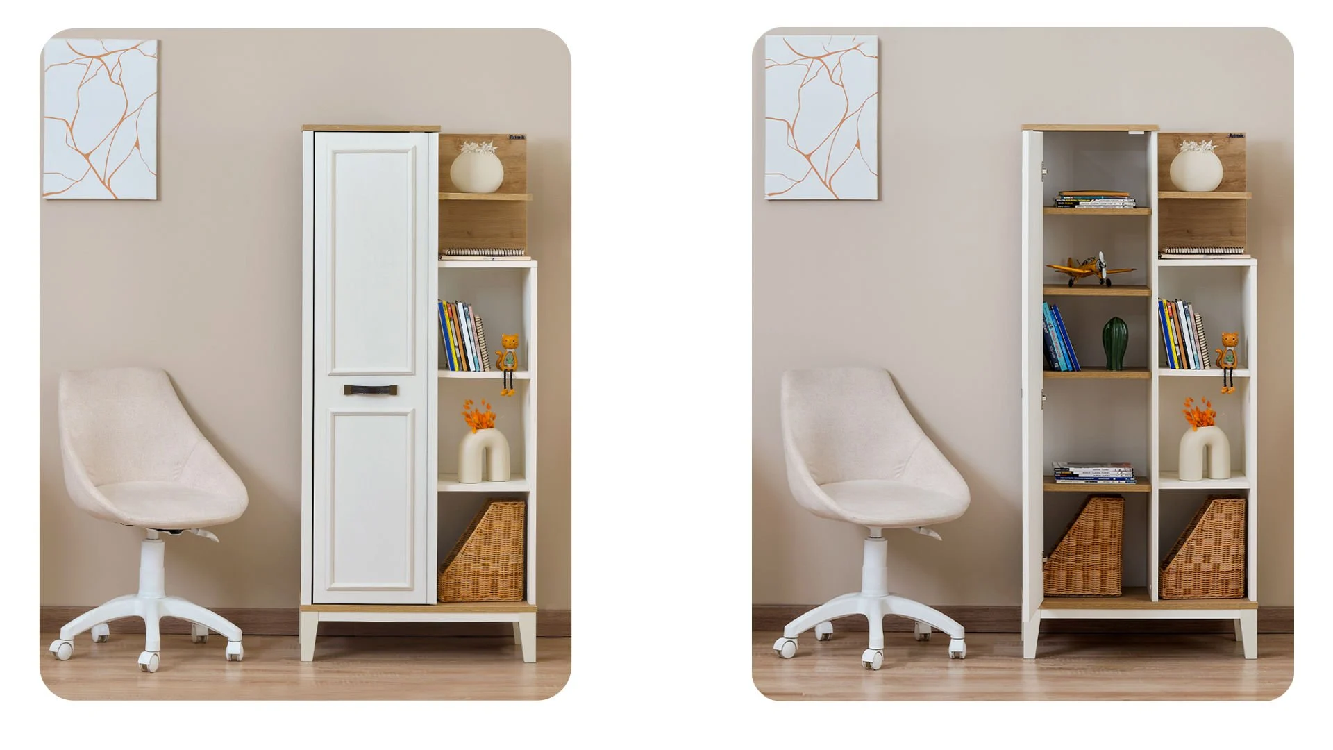 Η βιβλιοθήκη Poli έχει ένα κομψό και λειτουργικό σχέδιο, κατάλληλο για παιδικό δωμάτιο ή μικρούς χώρους.