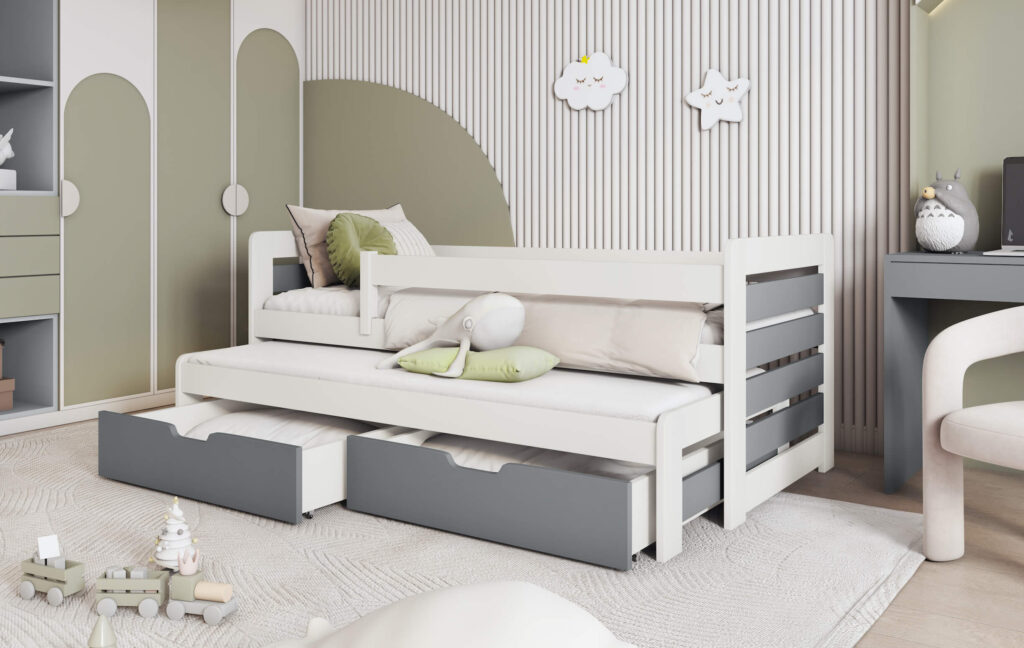 Το κρεβάτι διαθέτει προστατευτικά κάγκελα για απόλυτη ασφάλεια κατά τη διάρκεια του ύπνου, ιδανική για παιδιά που μεταβαίνουν από την κούνια στο “μεγάλο” τους κρεβάτι.
