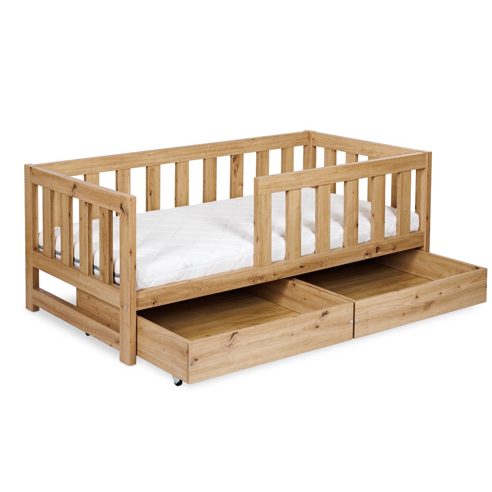 Παιδικό Κρεβάτι 160×80 με Προστατευτικά Κάγκελα – Dab / Oak.