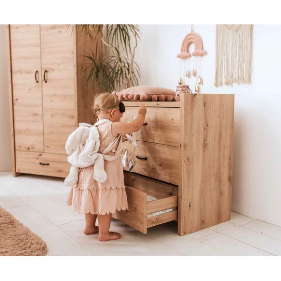Βρεφική συρταριέρα Amelia! Η συλλογή AMelia είναι ιδανική πρόταση για όσους αγαπούν τα κομψά έπιπλα και ακολουθούν τις τάσεις που επικρατούν. Τα ουδέτερα χρώματα κάνουν όλο το σετ να ταιριάζει εξίσου στο δωμάτιο ενός κοριτσιού και ενός αγοριού. Διαθέτει τρία μεγάλα συρτάρια. Στη συρταριέρα προσαρμόζεται προαιρετικά και, ξύλινη αποσπώμενη αλλαξιέρα της σειράς Amelia (πωλείται ξεχωριστά). Πολύ πρακτική για τους νέους γονείς. Χρώμα: φυσικό ξύλο Διαστάσεις: 84 x 46 x 87 εκ.