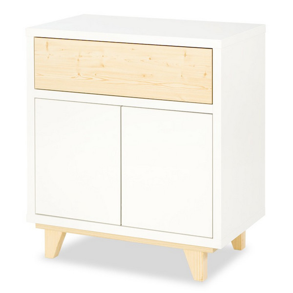 Βρεφική συρταριέρα Lydia Ο χρωματικός συνδυασμός λευκού και πεύκου είναι ιδανικός για κομψούς και άνετους εσωτερικούς χώρους. Ευρύχωρα και λειτουργικά έπιπλα. Η παιδική συρταριέρα Lydia είναι μοντέρνα και εύχρηστη. Διαθέτει: Ένα συρτάρι Ένα ευρύχωρο ντουλάπι με χώρισμα στη μέση Μηχανισμός push to open (άνοιγμα με ένα πάτημα) Χρώμα: λευκό – φυσικό Διαστάσεις: 80 x 45 x 88 εκ.