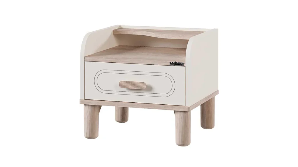 Tο Πράσινο Μέντα κομοδίνο Cool συμπληρώνει τέλεια το ασορτί κρεβάτι αυτής της συλλογής. Είναι κατασκευασμένο από λακαρισμένο MDF και μασίφ πεύκο. Έχει στρογγυλεμένες άκρες και μία πόρτα για την αποθήκευση προσωπικών αντικειμένων.