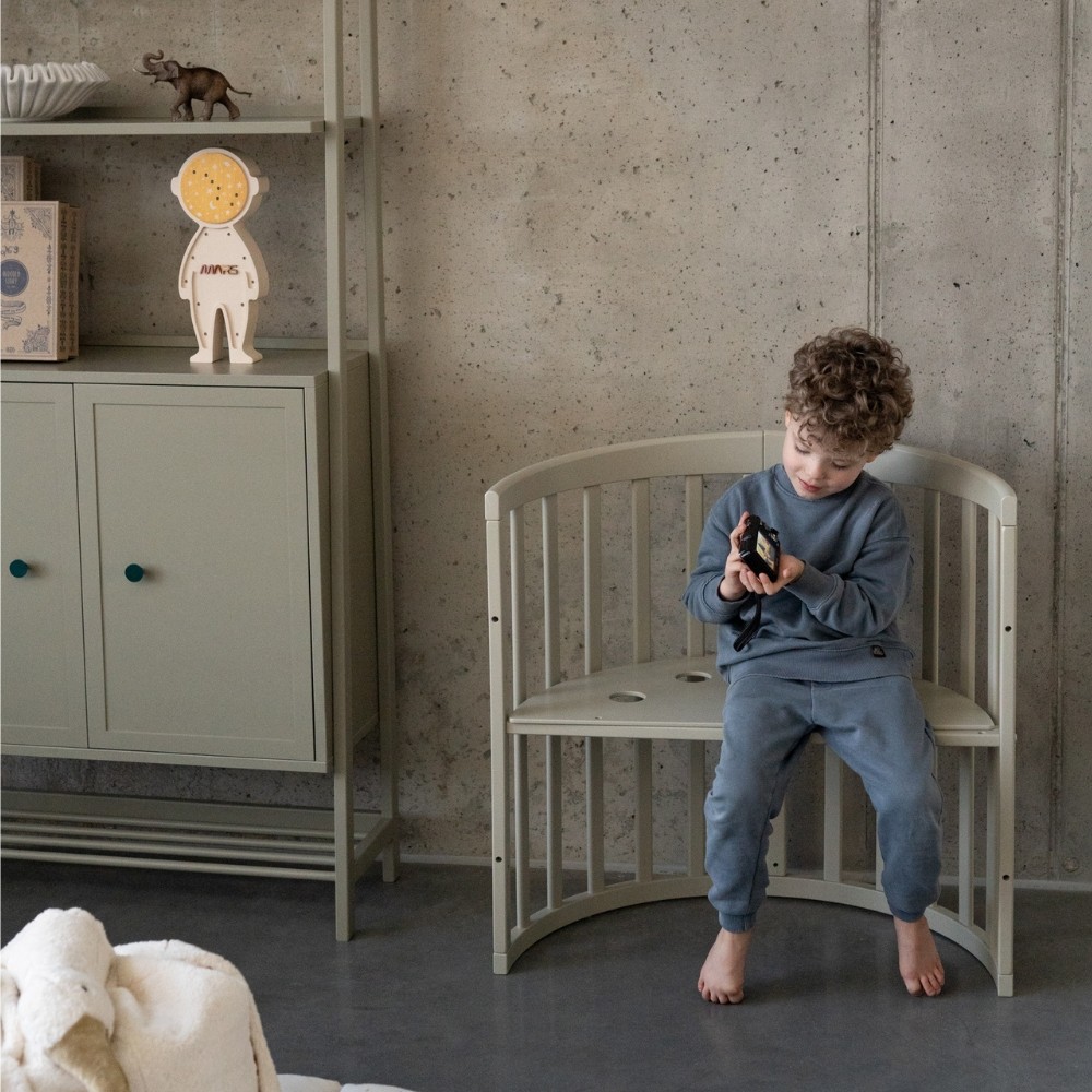 Όσο το παιδί σας μεγαλώνει, αποκτά όλο και περισσότερη ανεξαρτησία. Το μοντέλο 7-σε-1 θα το διευκολύνει σημαντικά. Μέσα σε λίγα λεπτά μπορεί να μετατραπεί σε μεγαλύτερο κρεβάτι προσφέροντας περισσότερο χώρο. Το έπιπλο είναι ήδη οικείο στο παιδί σας, προσφέροντας αίσθημα ασφάλειας και άνεσης. Επιπλέον, το κρεβάτι μπορεί να χρησιμοποιηθεί και ως παιδότοπος όταν η βάση χαμηλωθεί, με την απουσία γωνιών να επιτρέπει στο παιδί να μάθει να σηκώνεται και να σκαρφαλώνει ελεύθερα.