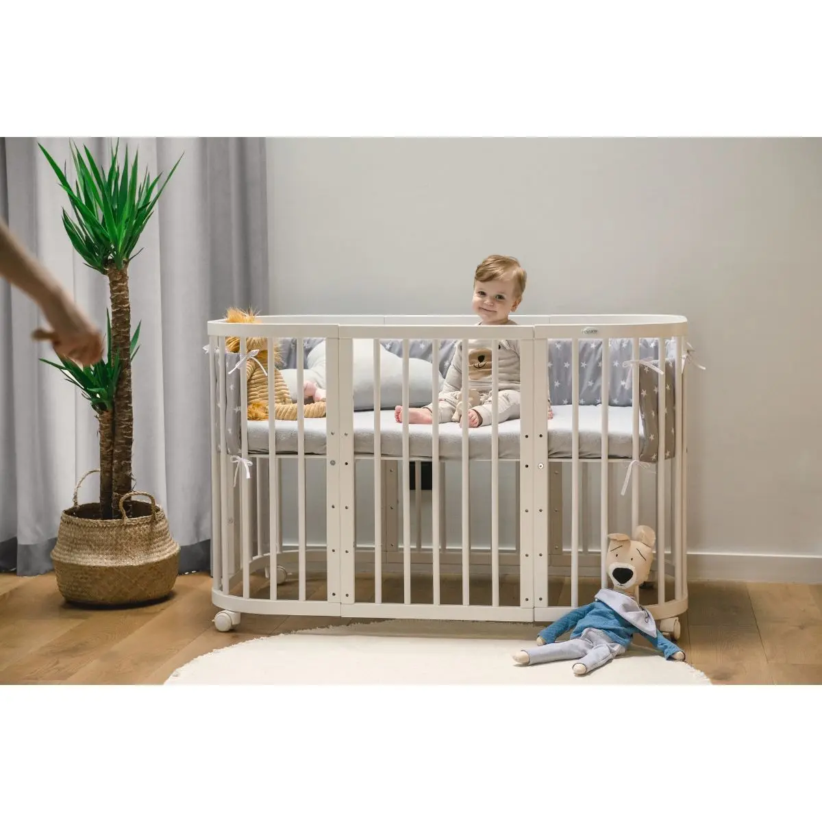 Το 7-σε-1 οβάλ βρεφικό κρεβάτι είναι το αποτέλεσμα πολυετούς εμπειρίας και εργασίας. Είναι κατασκευασμένο από ξύλο οξιάς, το οποίο χαρακτηρίζεται από την αντοχή και την ελαφρότητά του. Αυτή η παιδική επίπλωση θα αποτελέσει το κύριο διακοσμητικό στοιχείο του εσωτερικού χώρου, προσφέροντας παράλληλα λειτουργικότητα και ασφάλεια για τον ήρεμο ύπνο του μικρού σας.