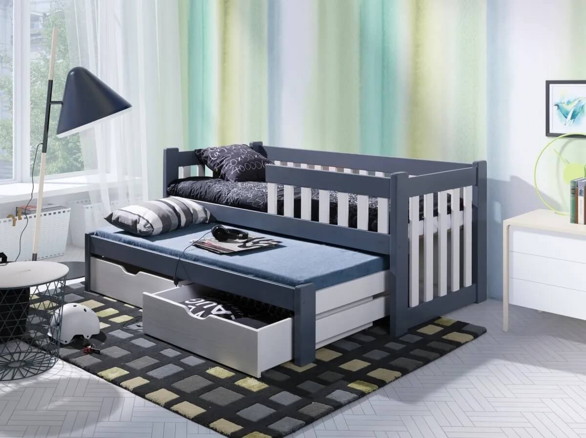Filip 2 ατόμων Παιδικό κρεβάτι ΜΑΣΙΦ με συρόμενο