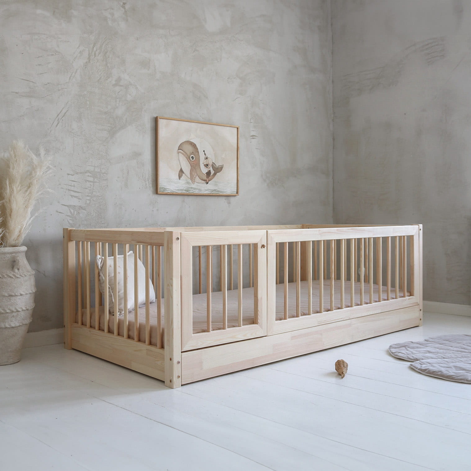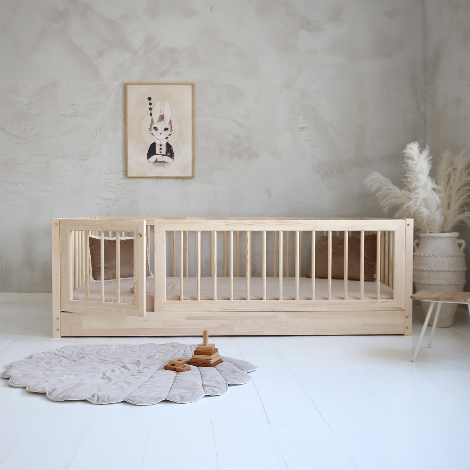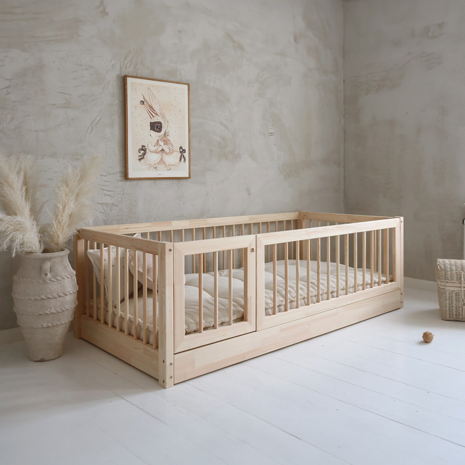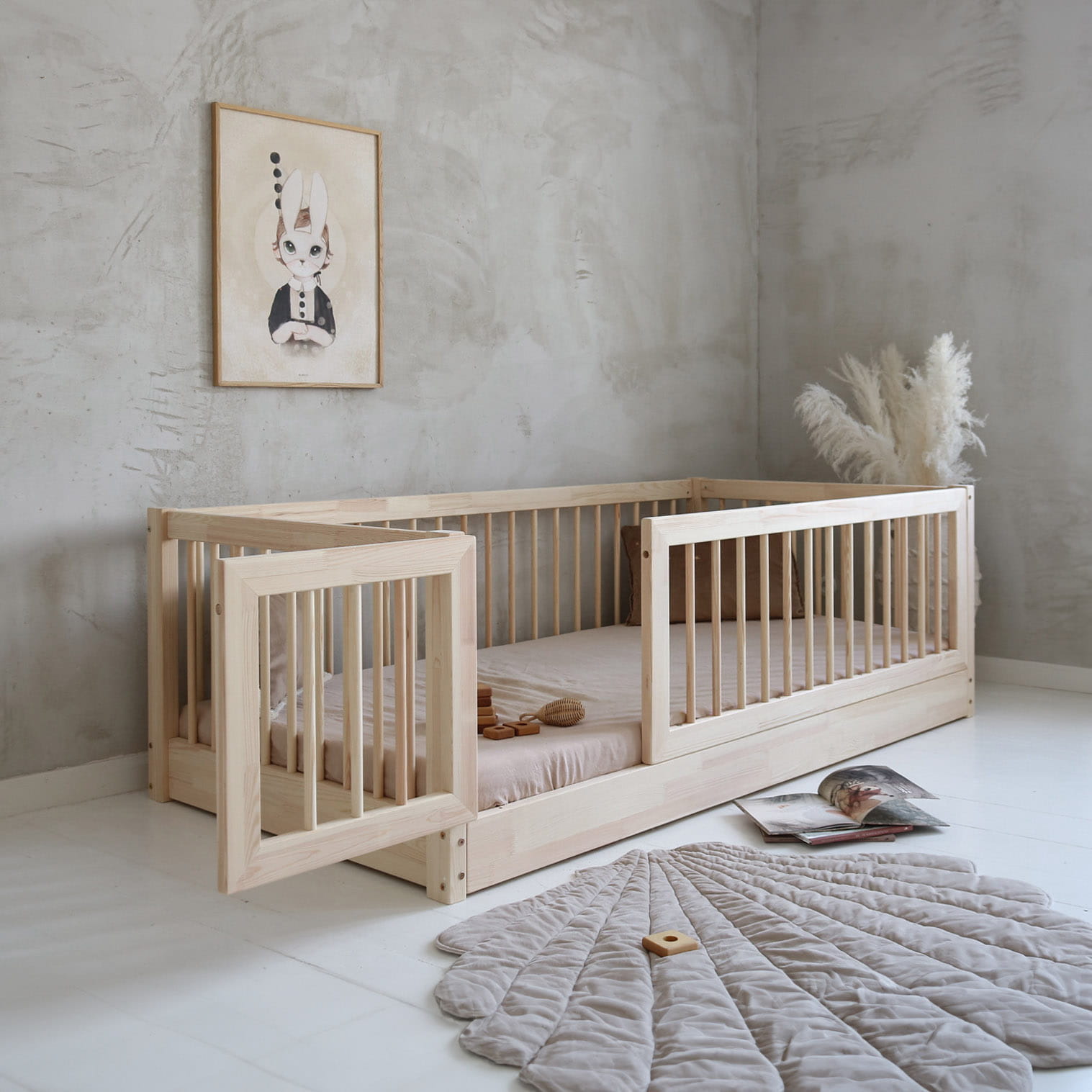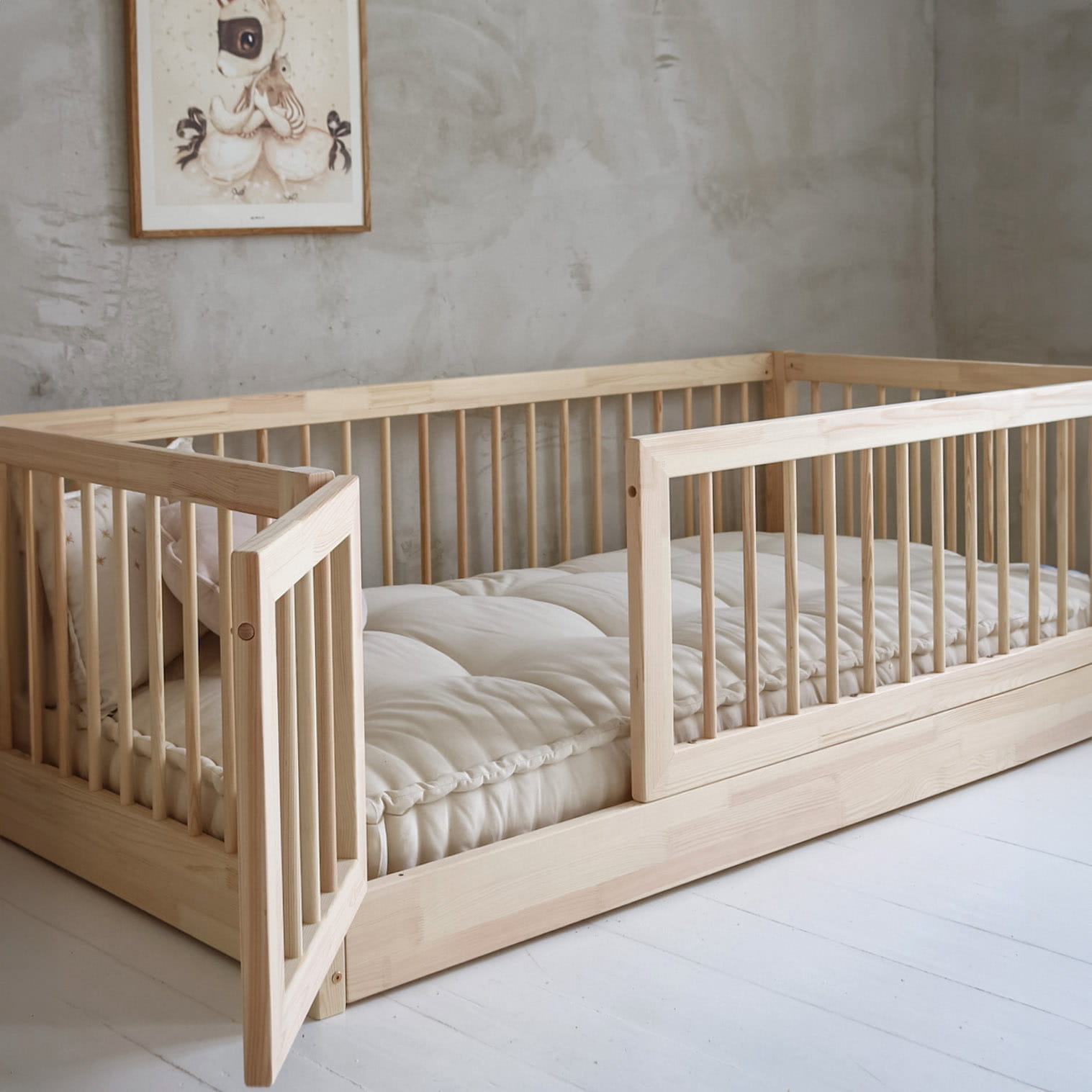 Το BAMBI κρεβάτι Rung Rails , είναι ένα κλασικό κρεβάτι με προστατευτικό καγκελάκι και πορτάκι. Aποτελείται από πλήρη σκελετό κρεβατιού με βάση για στρώμα, όπως παρουσιάζεται στις φωτογραφίες. Παίρνετε επίσης όλα τα στοιχεία για τη συναρμολόγηση ενός κρεβατιού, βίδες και κόλλα με βάση το νερό (απαραίτητα στη διαδικασία συναρμολόγησης για να κολλήσετε τα στοιχεία του κρεβατιού μεταξύ τους.) Στην τιμή δεν περιλαμβάνεται το στρώμα.