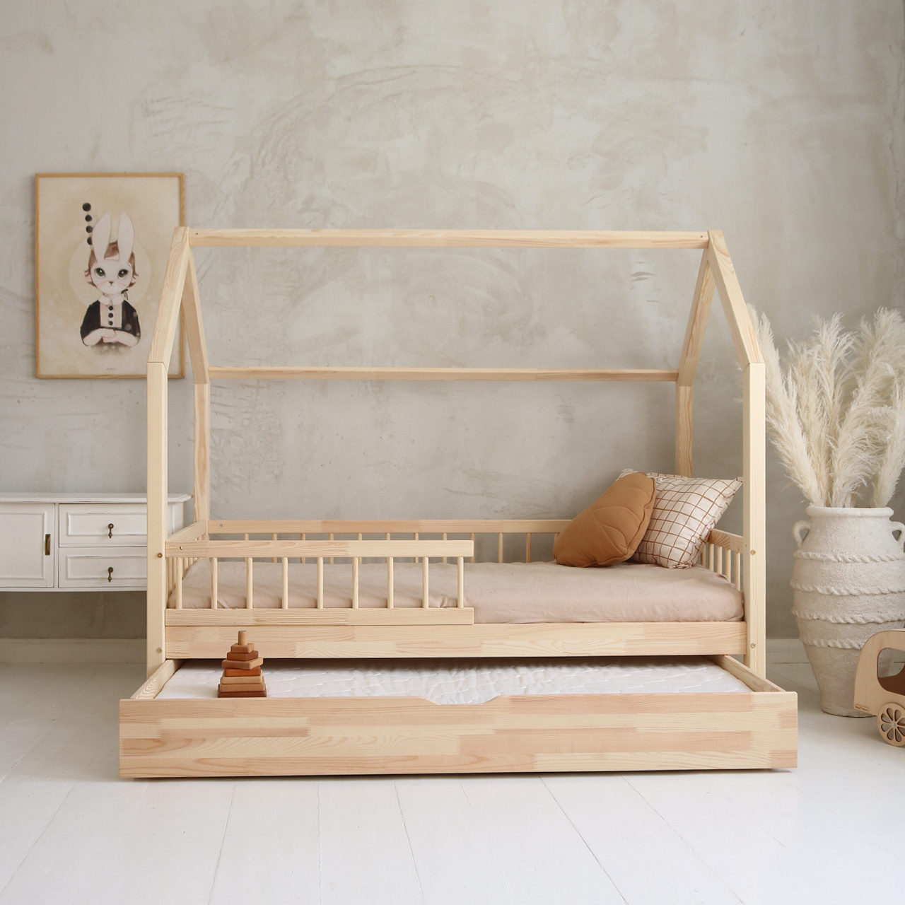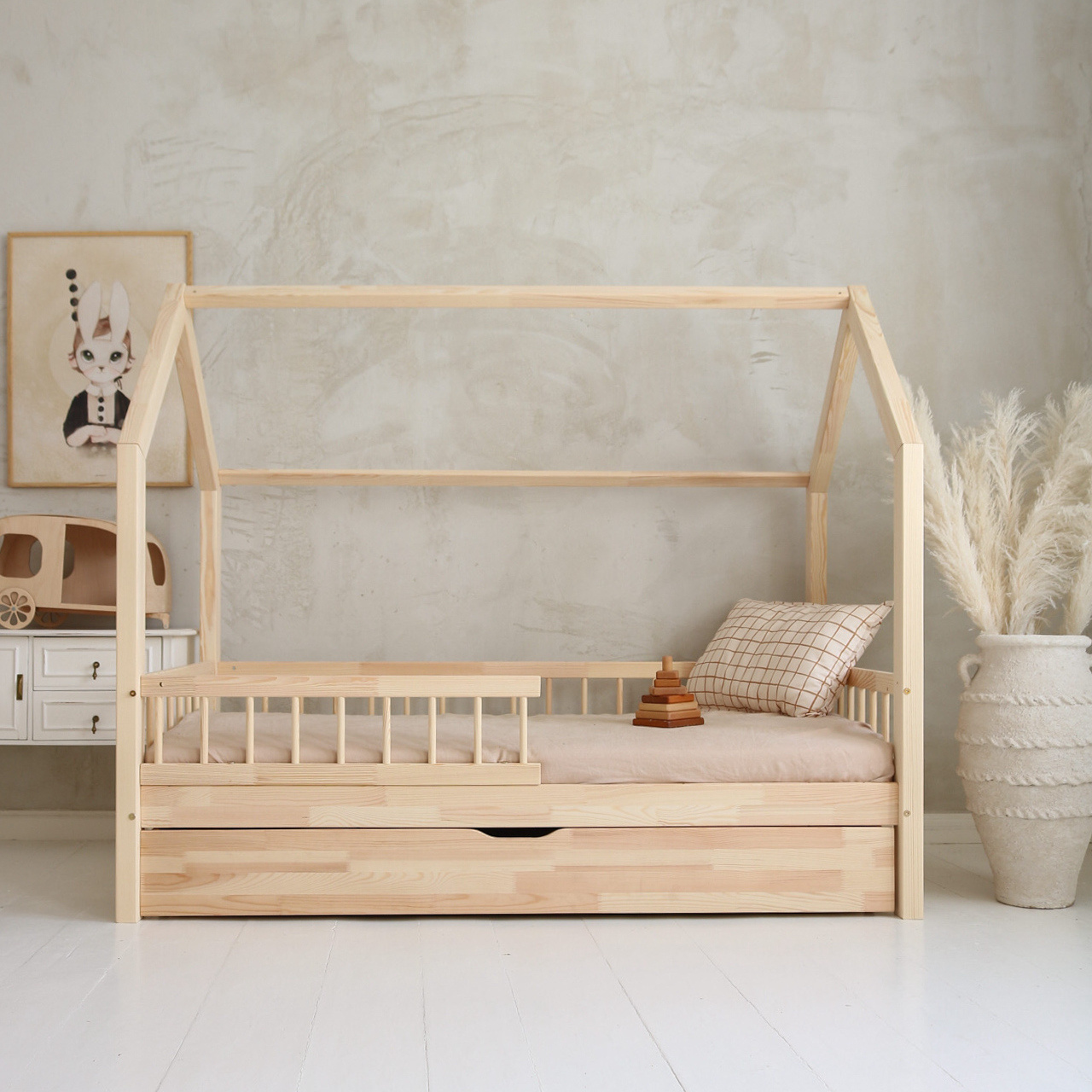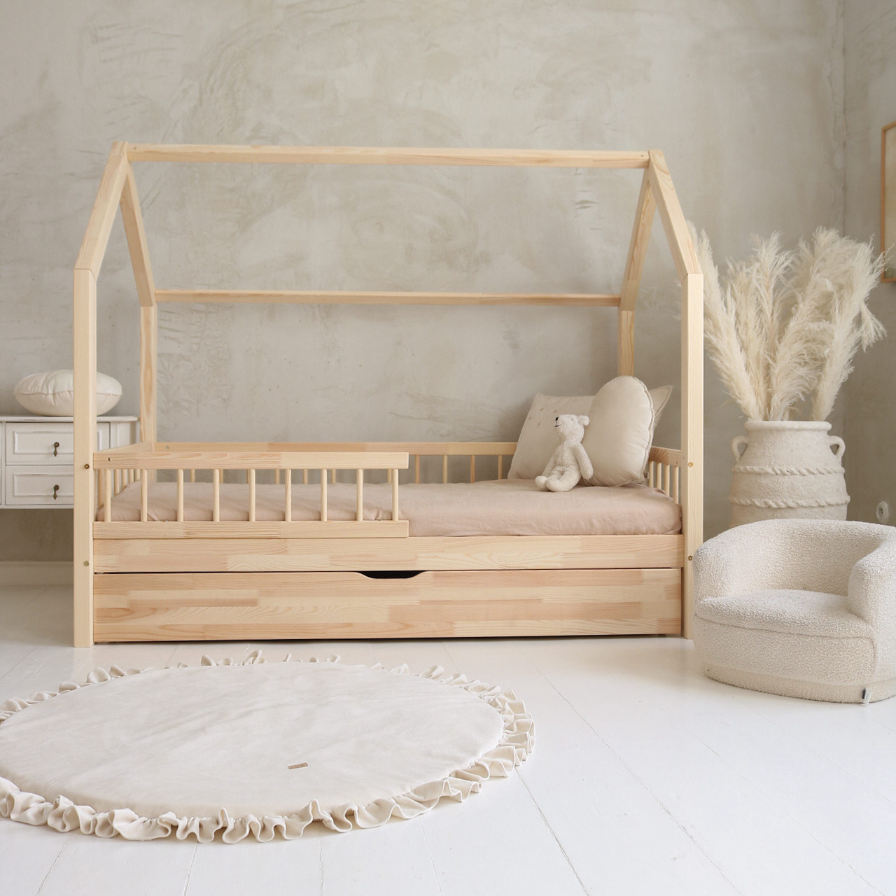 Bello Plus παιδικό κρεβάτι Montessori με συρτάρι ή δεύτερο κρεβάτι και αφαιρούμενα κάγκελα