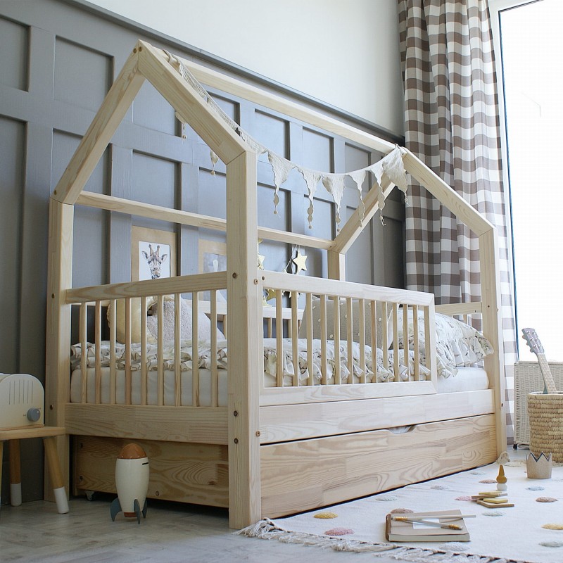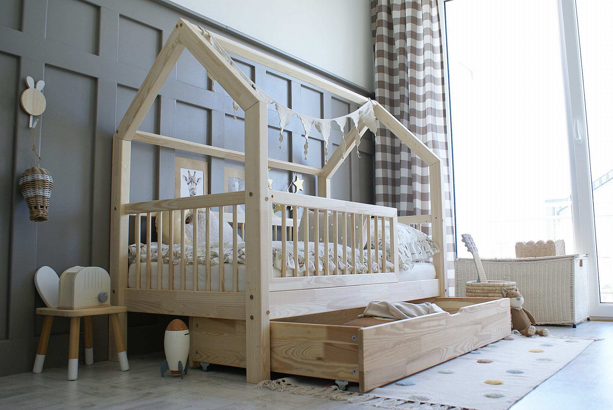 Το μοναδικό αυτό κρεβάτι σπιτάκι κατασκευασμένο εξ ολοκλήρου από μασίφ ξύλο, τώρα και με επιλογή ανάμεσα σε συρόμενο κρεβάτι ή συρτάρι σαν αποθηκευτικό χώρο!