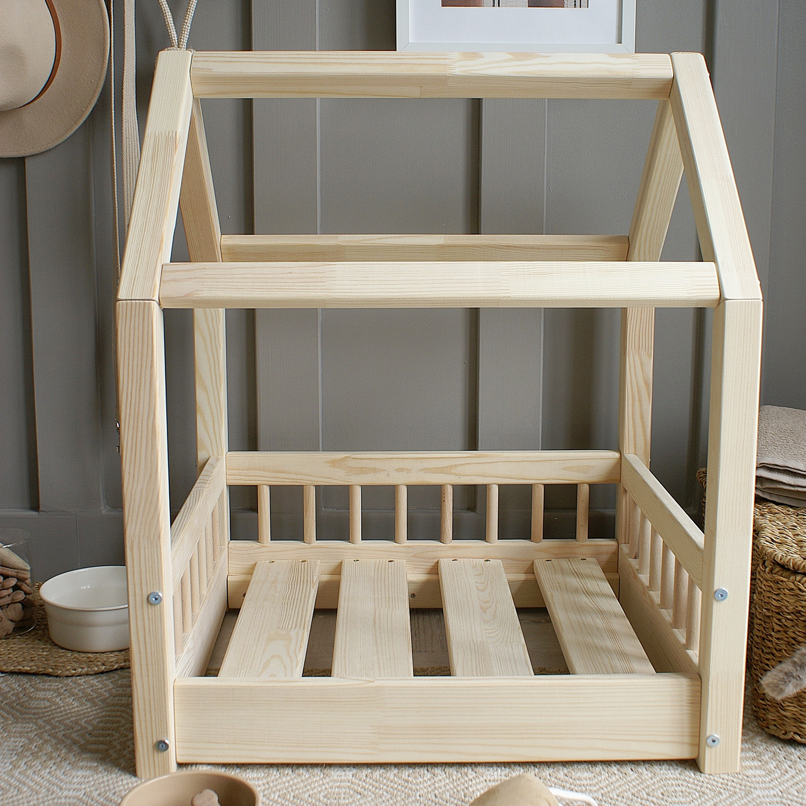 Furry House Κρεβάτι-Σπιτάκι από Φυσικό Ξύλο Μεγέθη S – Μ – L