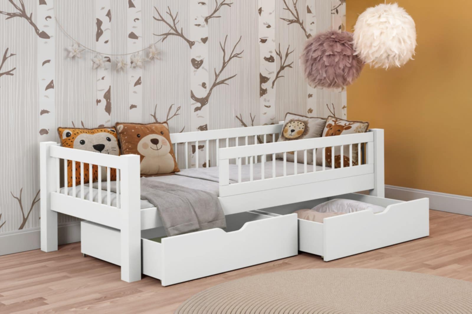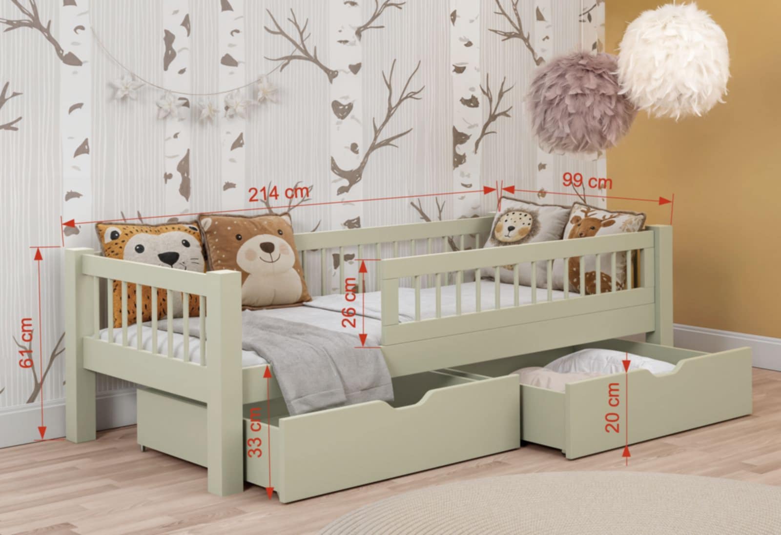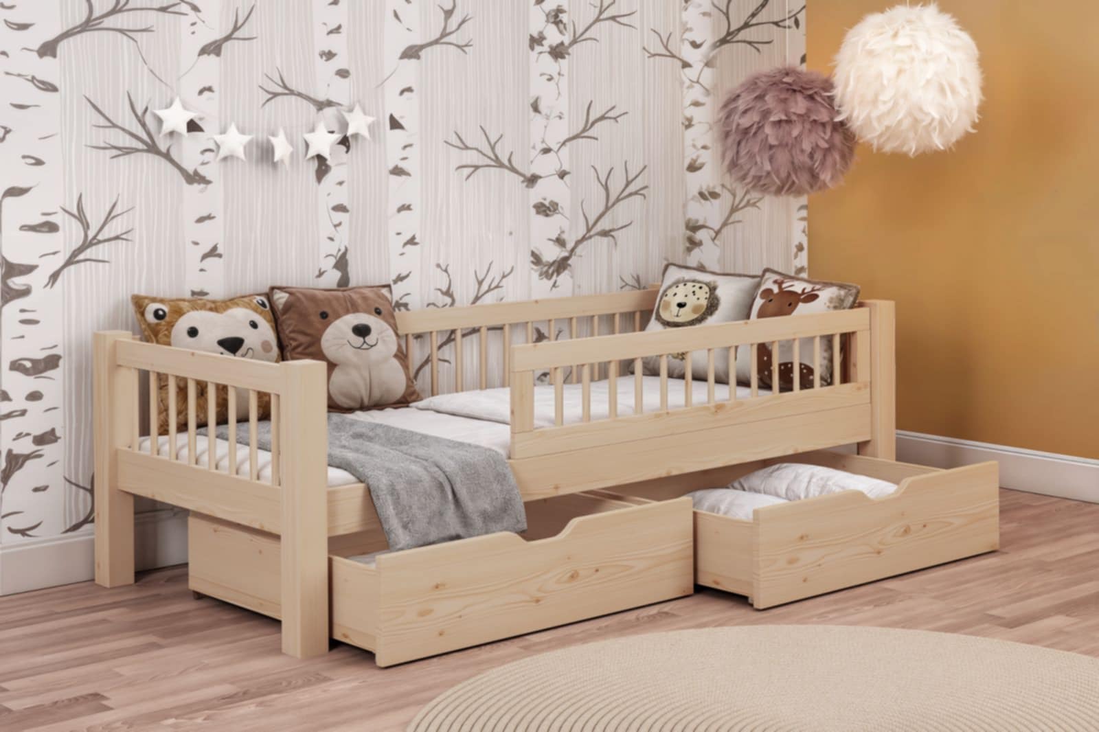 Το κρεβάτι Adel με συρτάρια συνδυάζει φυσική αισθητική, λειτουργικότητα και απόλυτη ασφάλεια, δημιουργώντας έναν ζεστό και έξυπνα οργανωμένο παιδικό χώρο. Κατασκευασμένο εξ ολοκλήρου από μασίφ πεύκο, ξεχωρίζει για την ανθεκτικότητα, τη σταθερότητα και τη διαχρονική του εμφάνιση. Διατηρεί το φυσικό χρώμα του ξύλου, αναδεικνύοντας τα νερά του πεύκου και ταιριάζοντας απόλυτα τόσο σε minimal όσο και σε πιο παιχνιδιάρικα παιδικά δωμάτια.