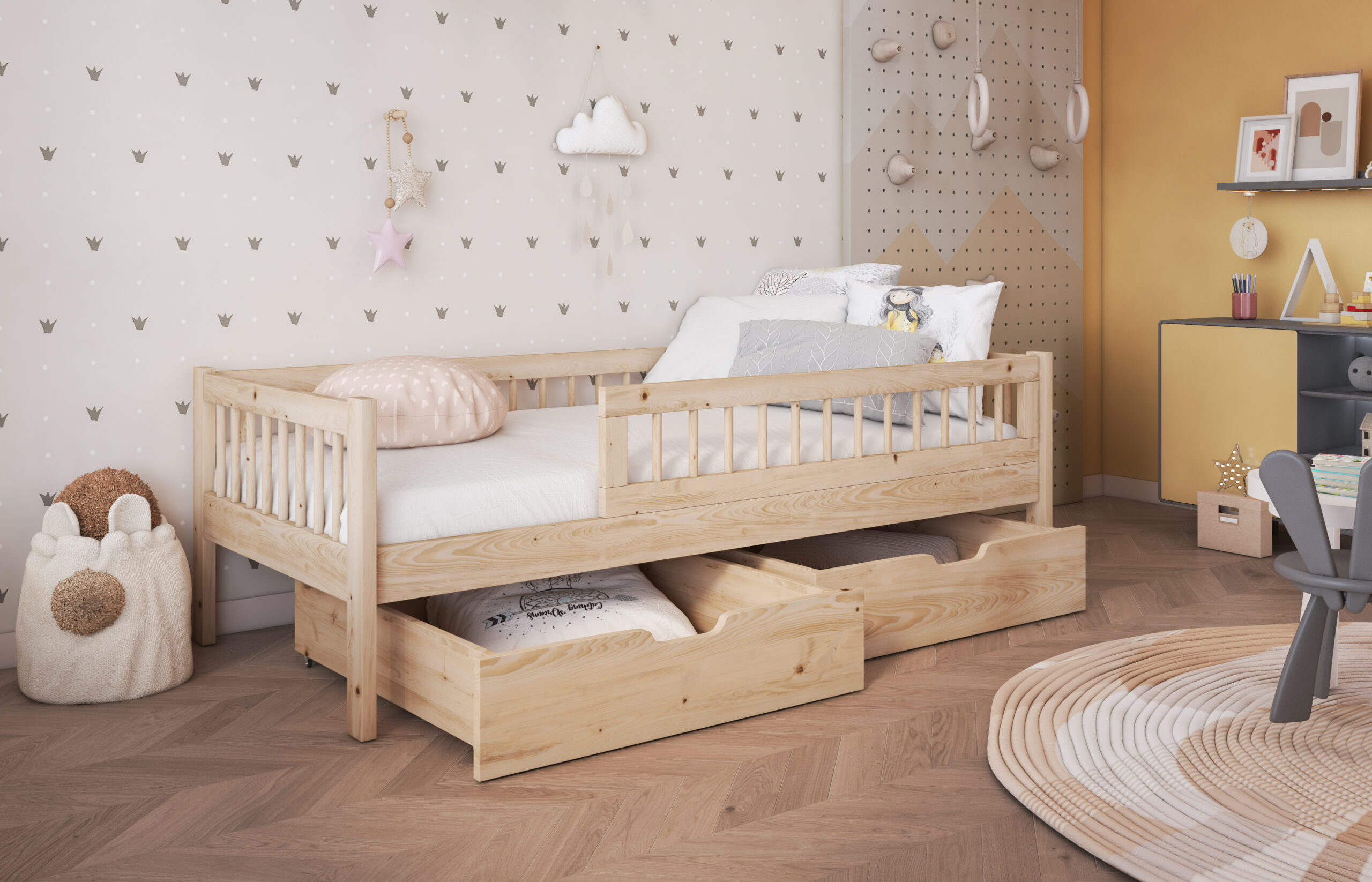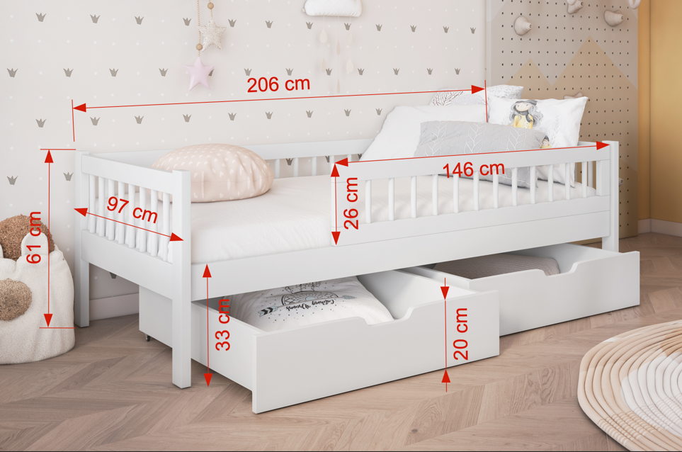 Flores παιδικό κρεβάτι με συρτάρια μασίφ ξύλο