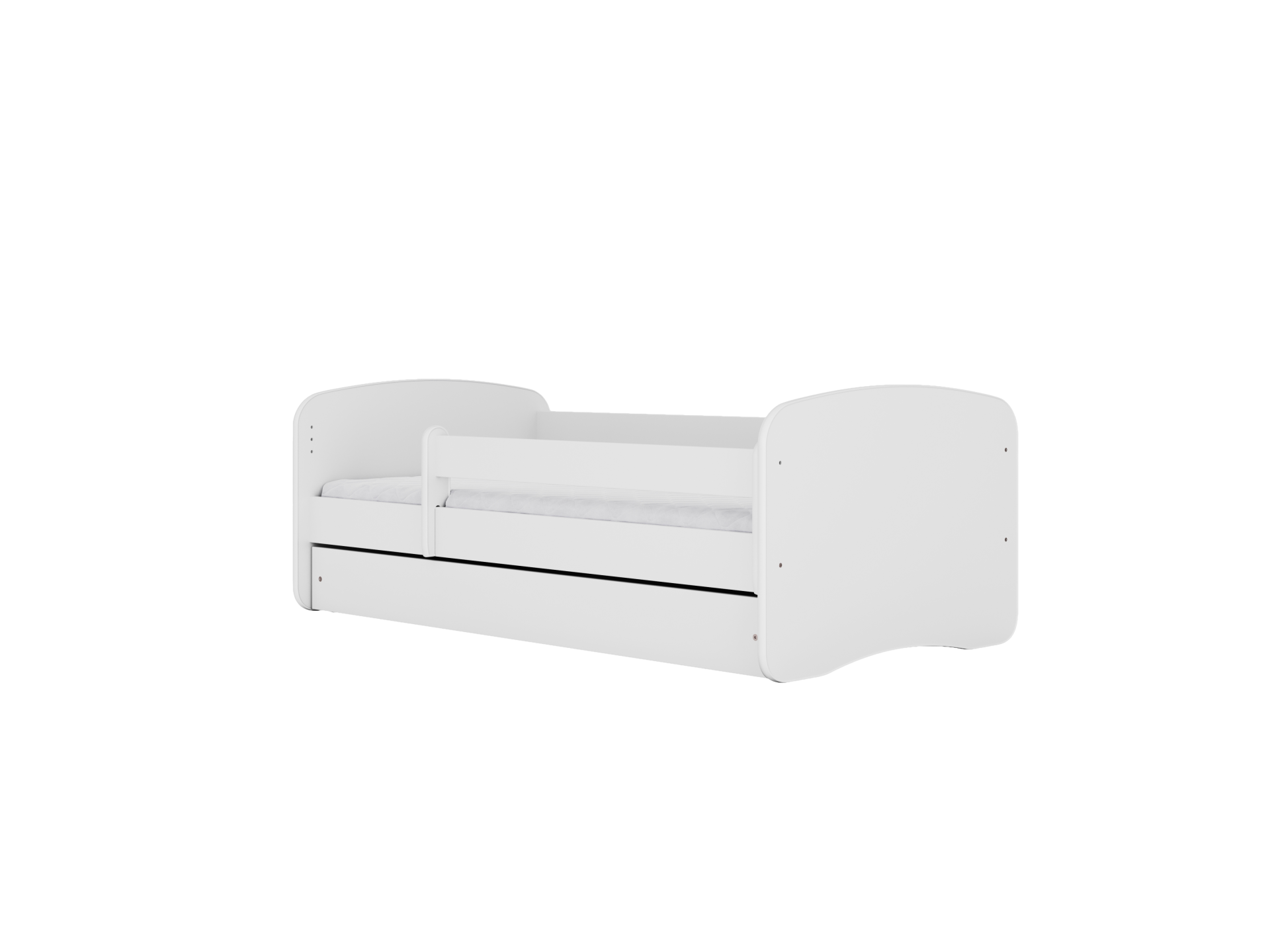 Οι προσόψεις των κρεβατιών είναι από σανίδα MDF βερνικωμένη τρεις φορές με οικολογικές βαφές. Το κρεβάτι έχει προστατευτικό κάγκελο που αφαιρείται και συρτάρια με ροδάκια. Οι στρογγυλεμένες άκρες εγγυώνται την ασφάλεια των παιδιών κατά τη χρήση. Μέγιστο φορτίο έως 100 kg. Πλαίσιο ελατηρίου FLEX: Οι τάβλες του κρεβατιού είναι κατασκευασμένες από πηχάκια σημύδας κολλημένα σε στρώματα, διαμορφωμένα σε ένα ελαφρύ τόξο, αυξάνοντας έτσι την άνεση και την ελαστικότητα του στρώματος ενώ παρέχουν επαρκή στήριξη και αερισμό για το στρώμα. Ρητίνη και από τις δύο πλευρές. Περιλαμβάνονται πλαστικά προστατευτικά καλύμματα για τις τάβλες τα οποία κρατούν το πλαίσιο σε σταθερή θέση και δεν δημιουργούν αμυχές στο ξύλο. Περιλαμβάνεται απλό στρώμα αφρού. Περιλαμβάνονται τα συρτάρια.