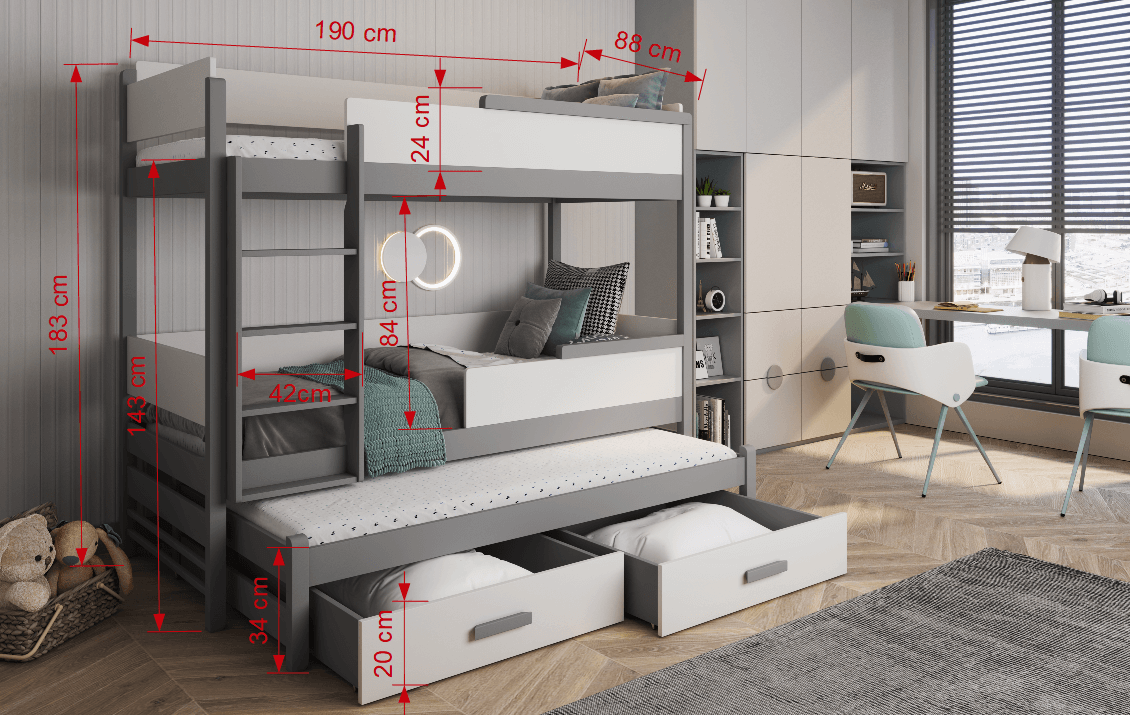 Διαστάσεις κουκέτας για στρώματα 180Χ80εκ.