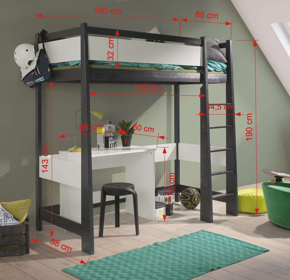 Κατασκευασμένη από ποιοτικό ξύλο πεύκου, η EVEREST εγγυάται διαρκή αντοχή και σταθερότητα, ικανή να αντέξει τις περιπέτειες κάθε παιδιού. Το φυσικό υλικό προσδίδει έναν ζεστό και καλωσοριστικό χαρακτήρα στο δωμάτιο, κάνοντάς το ιδανικό για χαλαρωτικό ύπνο και ευχάριστες στιγμές.
