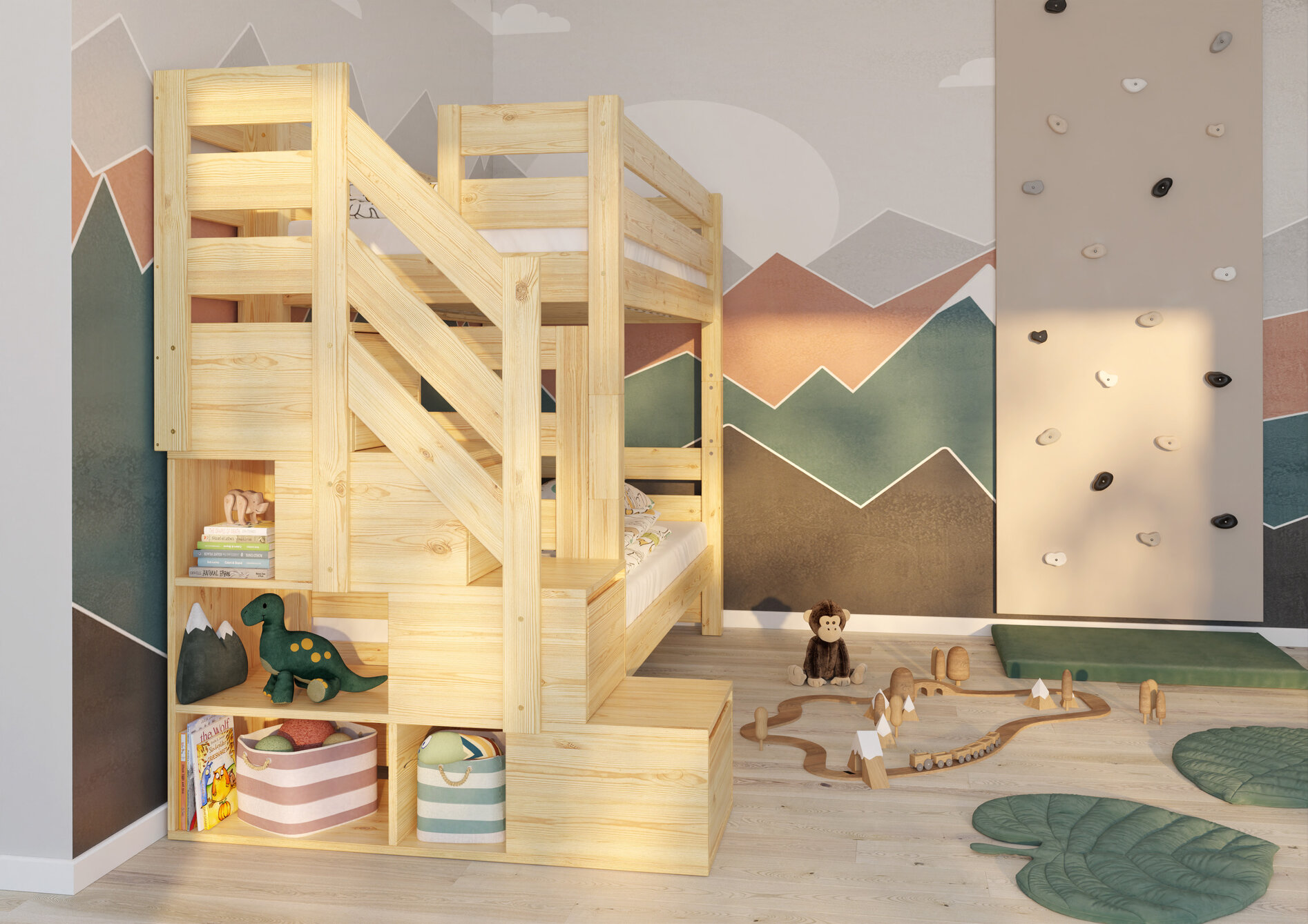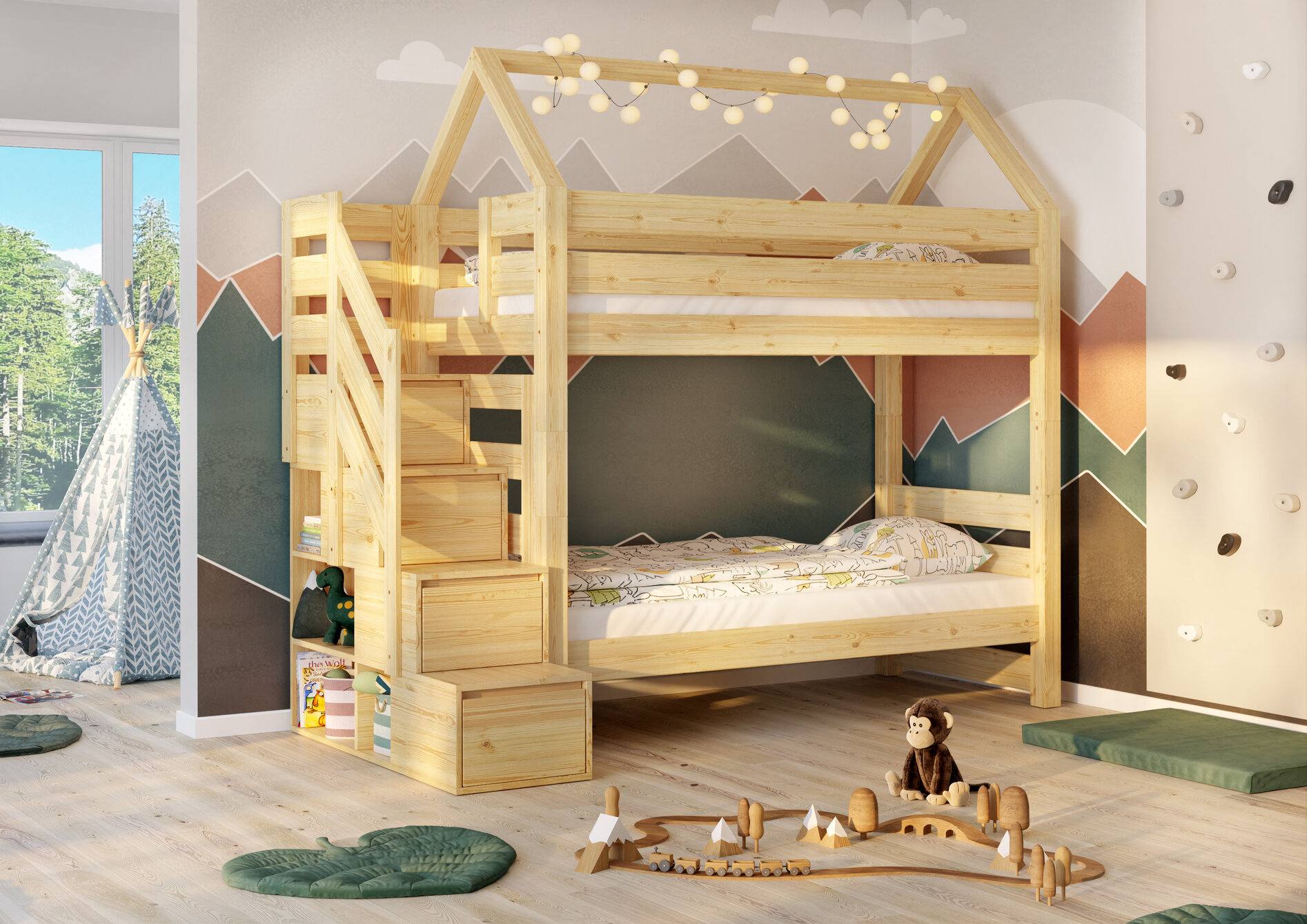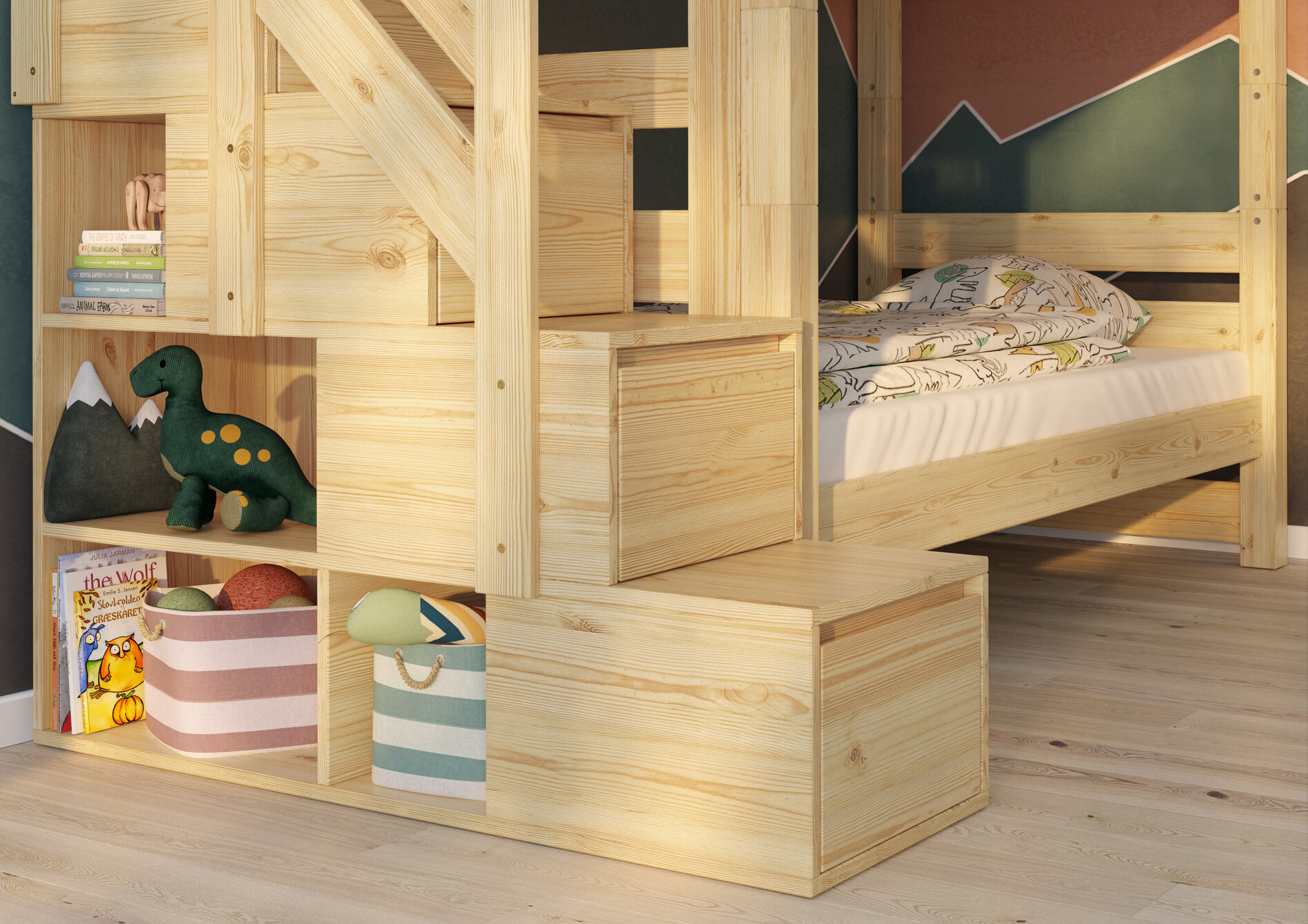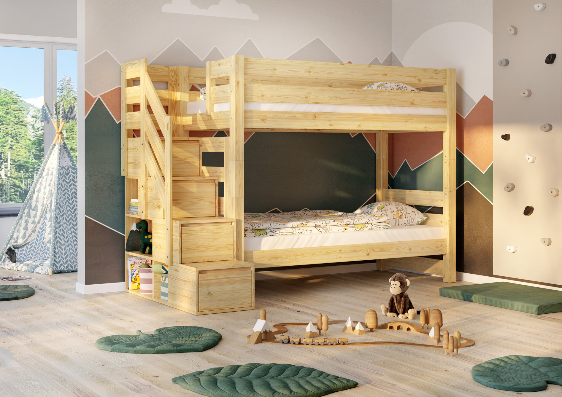 Με μια ανώτατη αντοχή φορτίου 100 κιλών ανά κρεβάτι, αυτή η κουκέτα είναι σχεδιασμένη για να συνοδεύει τα παιδιά σας καθώς μεγαλώνουν, προσφέροντας ασφάλεια και σταθερότητα. Η σύνθεση χωρίς MDF και η επικάλυψη με ασφαλές ημι-ματ βερνίκι εγγυώνται την υψηλή ποιότητα και την ασφάλεια του προϊόντος, ενώ ταυτόχρονα διατηρούν τη φυσική ομορφιά του ξύλου.