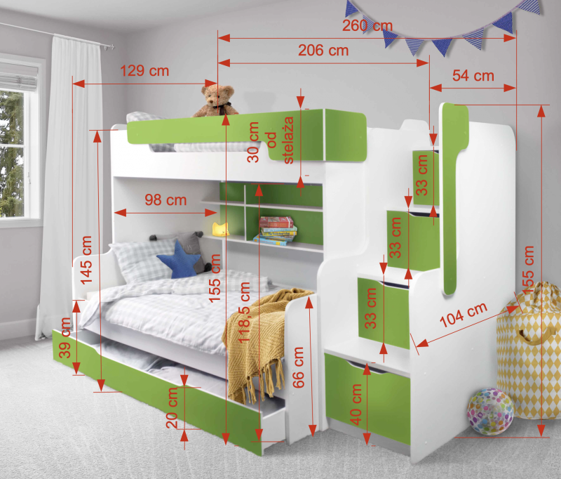 | Τύπος κρεβατιού κουκέτας | Κουκέτα 3 ατόμων |