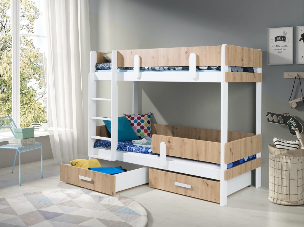 JOKER παιδική κουκέτα ΛΕΥΚΟ / ΦΥΣΙΚΟ ΞΥΛΟ για στρώμα 100 X 200 με ΣΚΑΛΟΠΑΤΙΑ (ΣΥΝΘΕΣΗ)